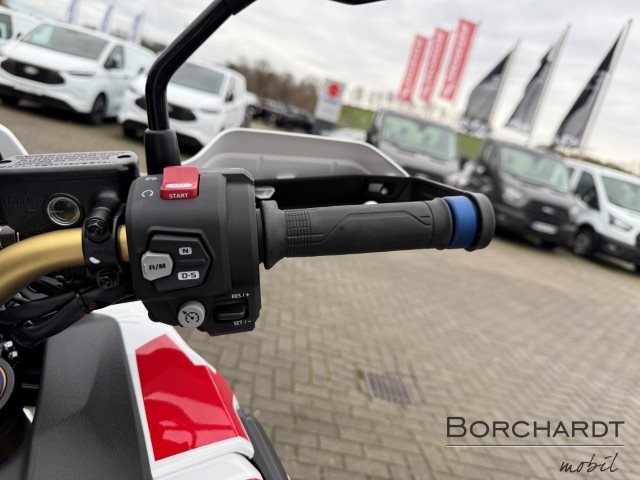 Auf das Drehmoment kommt es an. Dieses sorgt für direkte Beschleunigung und sichere Überholvorgänge, vor allem, wenn man zu zweit und voll beladen unterwegs ist. Wir haben 7 % zusätzliches Drehmoment aus dem flüssigkeitsgekühlten OHC-Zweizylindermotor herausgeholt. Insbesondere die Leistung im unteren und mittleren Drehzahlbereich wurde deutlich gesteigert. Mit dem höheren Verdichtungsverhältnis, der neuen Ventilsteuerung und der überarbeiteten Ansaug- und Auspuffanlage gibt es keine Leistungseinbußen. Die Spitzenleistung beträgt 75 kW (101hp). Die Throttle-by-Wire-Steuerung ist unübertroffen präzise.