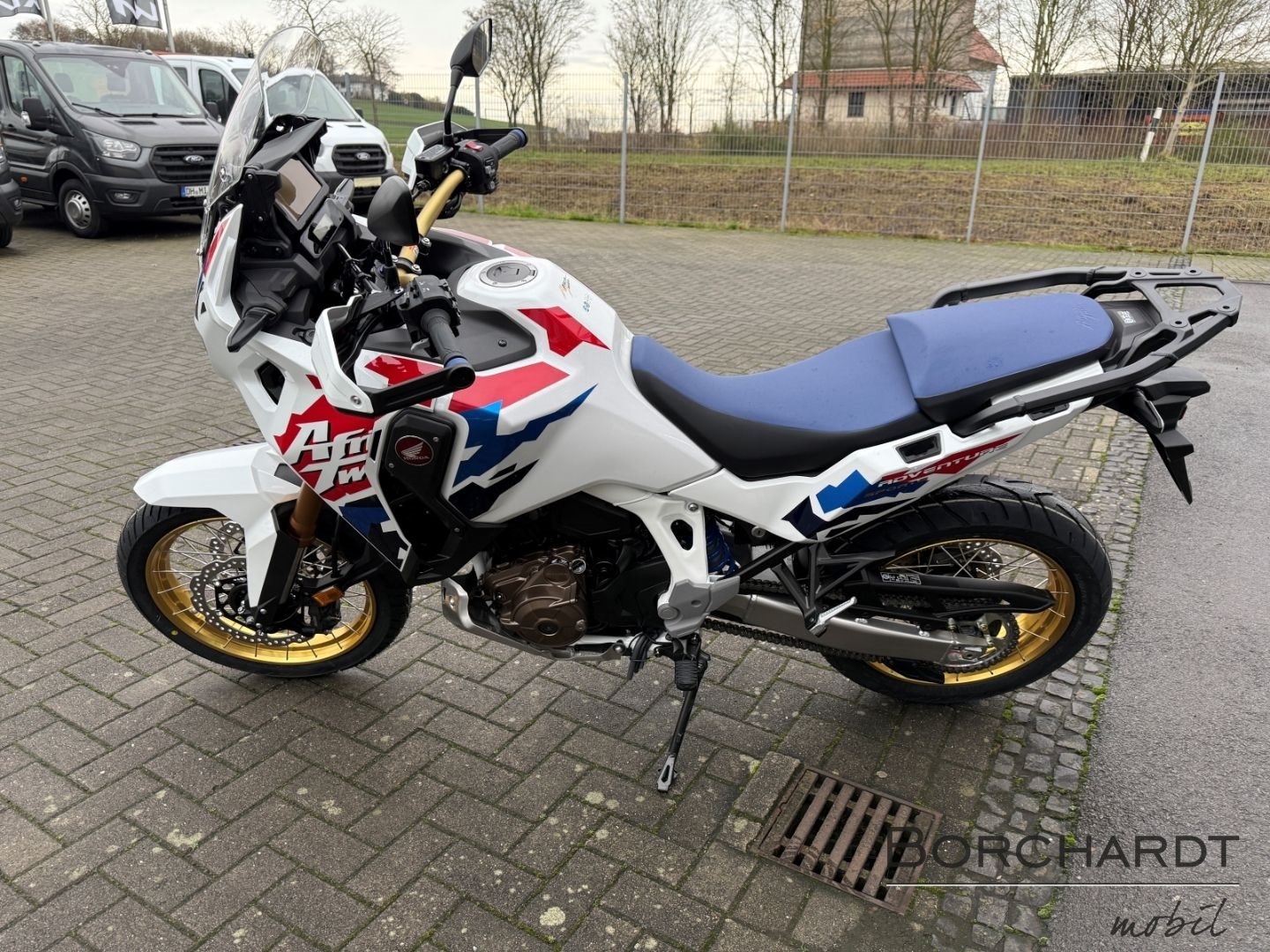 Die Africa Twin ist ab sofort in einer neuen Variante erhältlich. Die Leistung des gewohnt agilen Adventure-Bikes setzt neue Maßstäbe und zeichnet sich besonders durch das zusätzliche Drehmoment im unteren Drehzahlbereich aus. Die neue verstellbare Verkleidungsscheibe macht die Tage auf der Straße wesentlich komfortabler. Die schlauchlosen Reifen lassen sich leicht reparieren. Zusätzlich eröffnet die als Sonderausstattung erhältliche elektronisch einstellbare Showa-EERAT-Aufhängung der Africa Twin ES eine ganz neue Dimension des Abenteuers.
