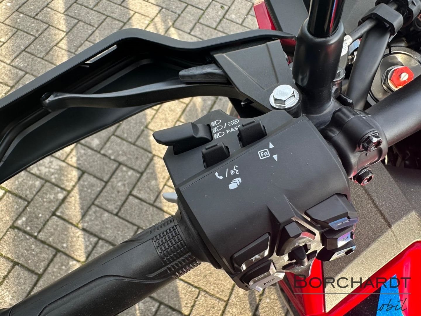 Ihre umfassende elektronische Ausstattung macht die Fahrt mit der Africa Twin angenehmer und sicherer. Auf jeder Strecke. Die siebenstufige Honda-Drehmomentkontrolle (HSTC), die von einer 6-Achsen-IMU gesteuert wird, überwacht die Hinterradtraktion und sorgt für eine sanfte Fahrt auf der Straße oder im Gelände. Die dreistufige Wheelie-Control wirkt dem Abheben des Vorderrads in der gewünschte Stärke entgegen und das ABS mit Kurvenfunktion sorgt für eine sichere Bremssteuerung. Mit URBAN, TOUR, GRAVEL und OFF-ROAD sind vier voreingestellte Standardfahrmodi vorhanden. Im USER-Modus können Fahrer sämtliche Parameter individuell festlegen.