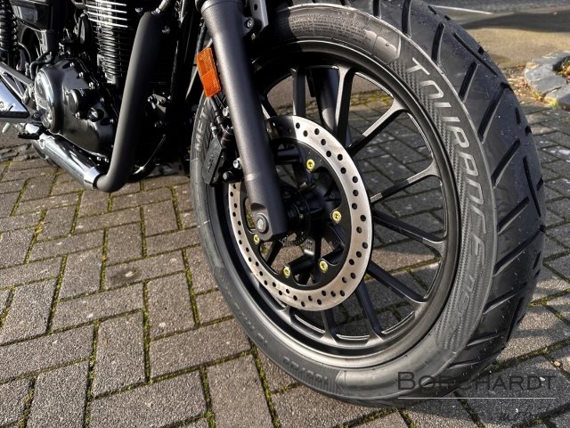 Der Doppelschleifen-Stahlrohrrahmen, das Vorder- und Hinterrad (19 bzw. 17 Zoll) mit ihrer Laufruhe und der beruhigende Grip der breiten Radialreifen sorgen für ein kontrolliertes Fahrgefühl. Die 41-mm-Teleskop-Gabel gewährleistet ein geschmeidiges Ansprechen und wird von zwei hinteren Federbeinen mit einer Stahlschwinge unterstützt. Zu den weiteren Merkmalen gehören eine niedrige Sitzhöhe, ein niedriger Schwerpunkt, ein schlankes Sitzprofil und eine kompakte Bauweise. Eine aufrechte Fahrposition, die eine hervorragende Rundumsicht bietet, ein kleiner Wendekreis und breite Holme sorgen außerdem für herausragendes Handling in der Stadt. Flink, reaktionsschnell und dynamisch. Die GB350S macht in und außerhalb der Stadt eine gute Figur.