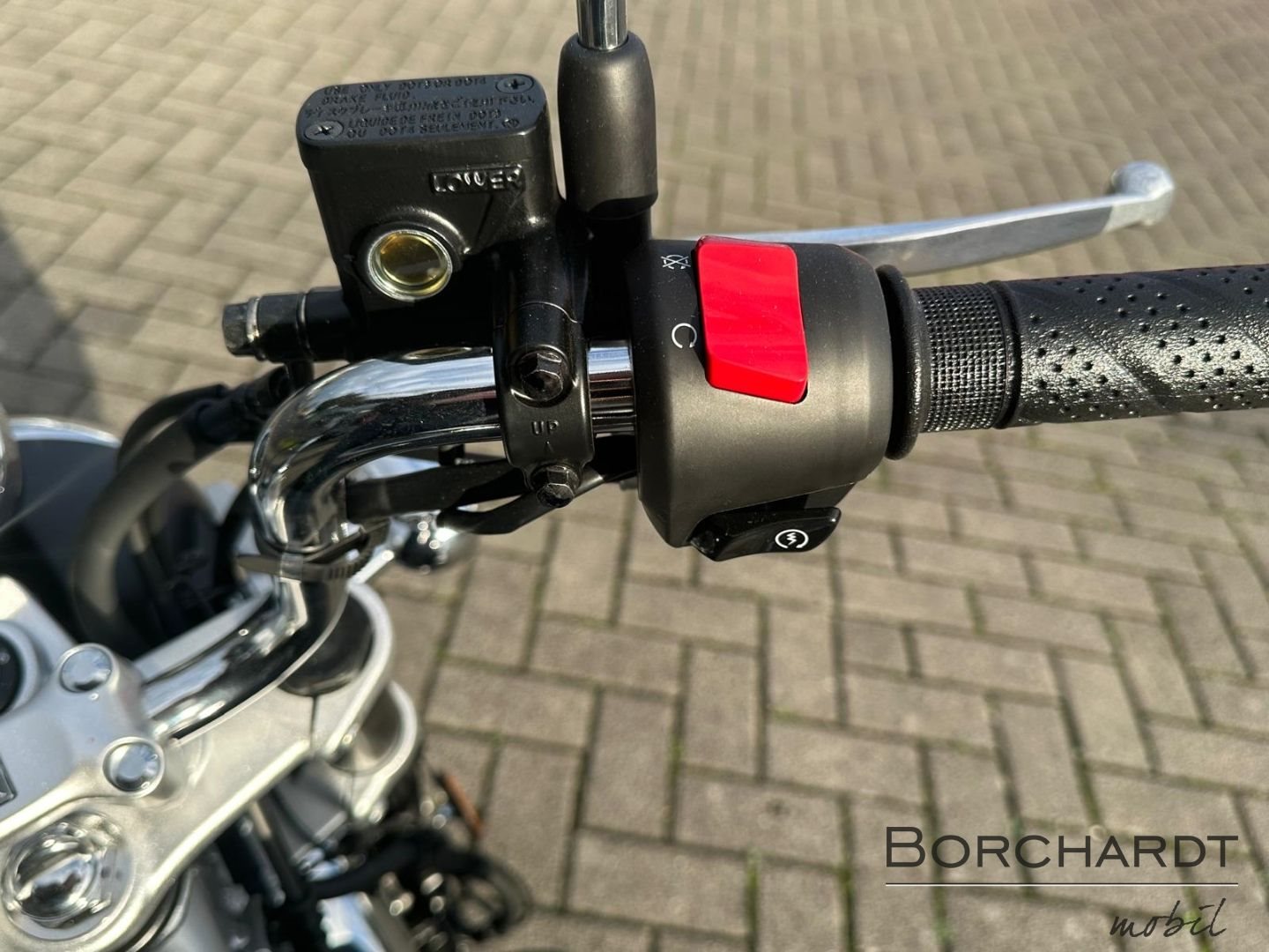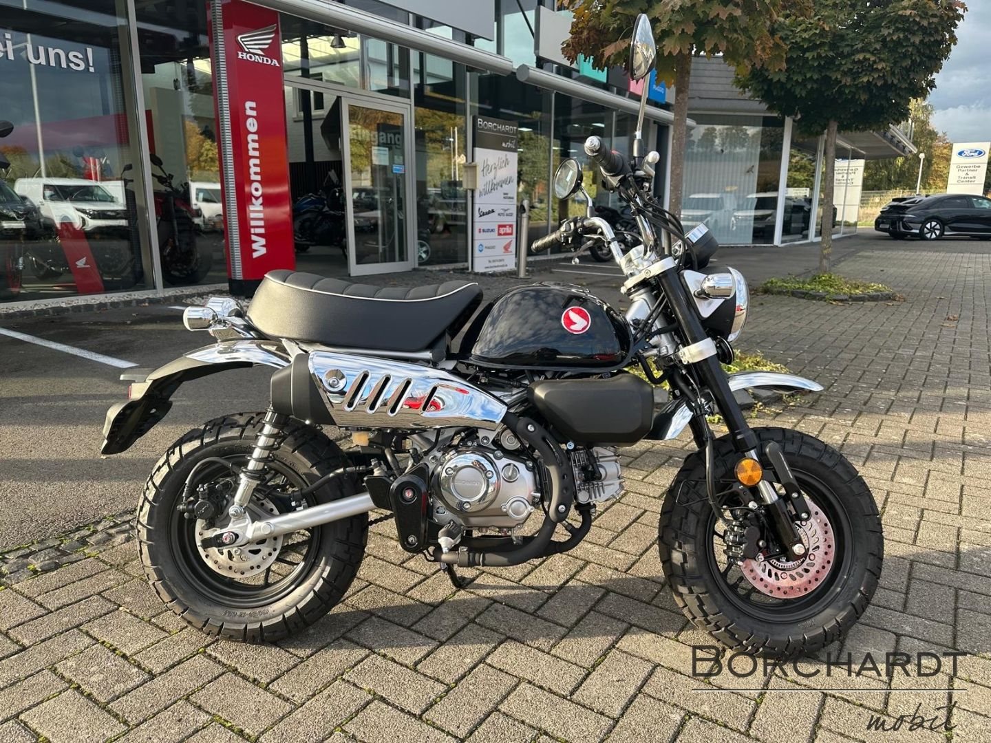 Die Monkey ist etwas ganz Besonderes. Sie hat ihren ganz eigenen Stil. Das macht ihren einzigartigen Charakter aus. Der verchromte Hochlenker sowie die einheitliche Lackierung von Rahmen, Schwinge und Stoßdämpfern sowie der Erdnusstank und die hoch angesetzten Radabdeckungen ziehen die Blicke auf sich. Weiter unten sind die wuchtigen Stollenreifen ein wahrer Blickfang. In das robuste Chassis sind neben dem sparsamen, luftgekühlten 125-cm-Motor auch ein 5-Gang-Getriebe und ein IMU-gesteuertes ABS eingebaut. Freue dich über ein kleines, 104 kg leichtes Motorrad mit einer bequemen Sitzhöhe von nur 775 mm. Ein kleines Motorrad mit großem Herz, das Spaß macht und viel zu bieten hat. Das ist die Monkey.