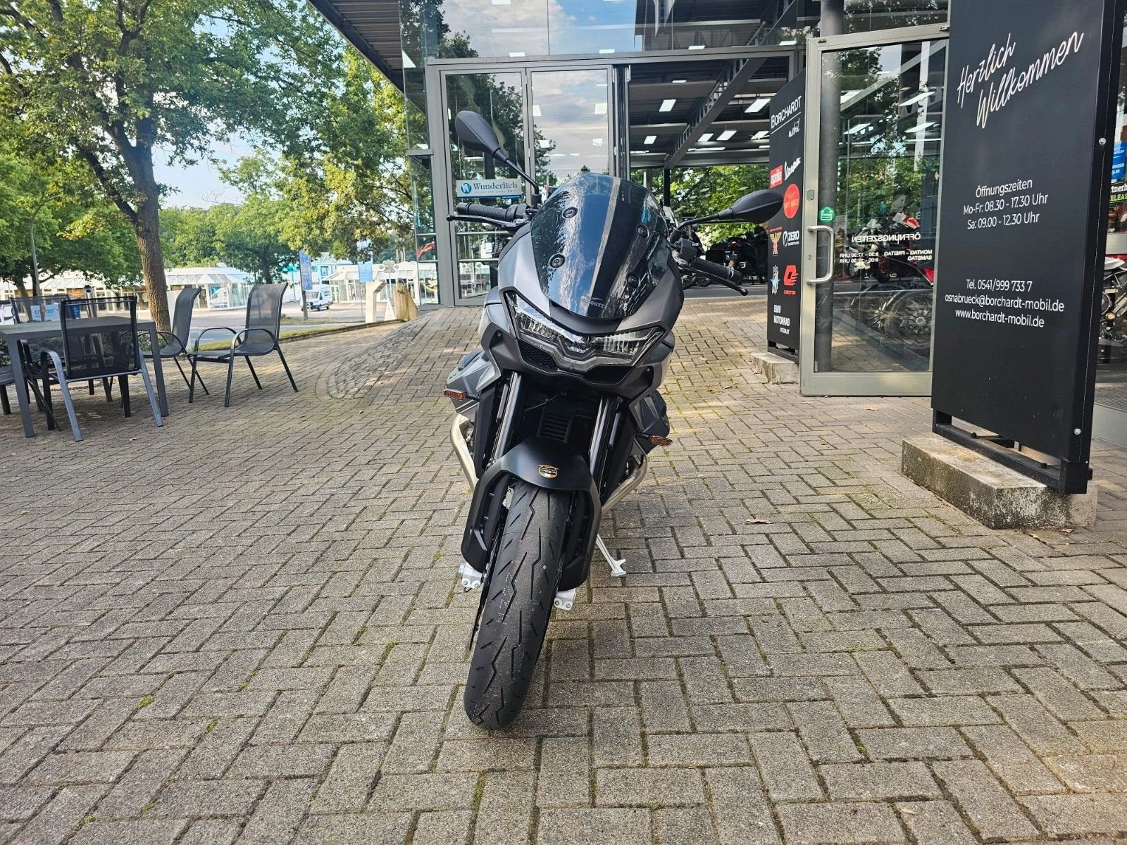 - Komplettes Elektronikpaket Moto Guzzi V100 Mandello bietet ein Elektronikpaket, das Sicherheit und Kontrolle unter allen Bedingungen garantiert. Die sechsachsige Inertiaplattform verwaltet das Kurven-ABS und die Traktionskontrolle und passt die Bremsleistung automatisch an den Schräglagenwinkel an. Über das 5-Zoll-TFT-Farbdisplay an Bord kann zwischen vier verfügbaren und anpassbaren Fahrmodi gewählt werden: TOURING, SPORT, STRADA und RAIN, die Leistung, Traktion und adaptive Aerodynamik je nach Fahrstil und Straßenbedingungen optimieren. Der serienmäßige Tempomat erhöht den Komfort auf langen Strecken zusätzlich.