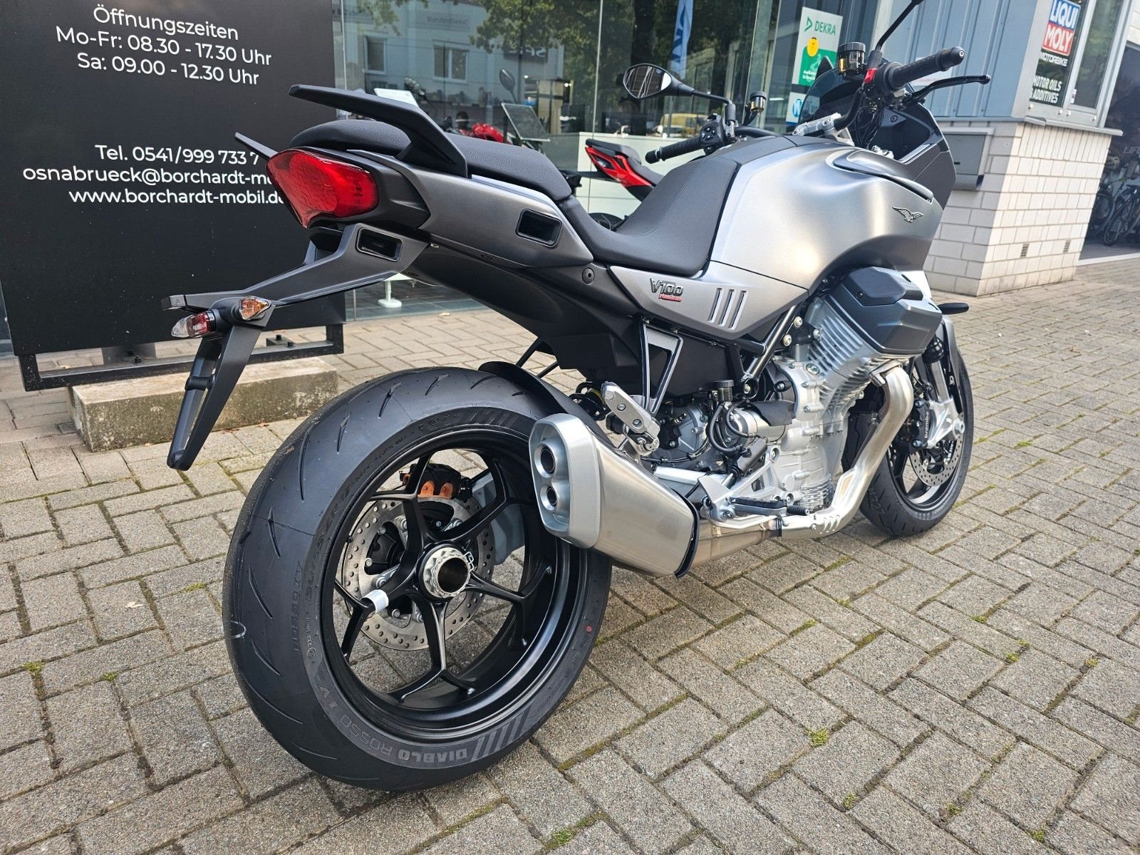 - Fortschrittliche Elektronik Die Moto Guzzi V100 Mandello verkörpert mehr als ein Jahrhundert technologischer Innovation.Dazu zähleb Full-Ride-by-Wire mit vier Riding Modes, die 6-Achsen-Inertiaplattform, das Kurven-ABS, der Tempomat sowie das 5-Zoll-TFT-Farbdisplay. Last but not least: Die Moto Guzzi Multimedia-Plattform, über die Sie Ihr Smartphone mit der Bordelektronik der V100 Mandello koppeln, Telefonie, Entertainment, Navigation und vieles mehr nutzen können.
