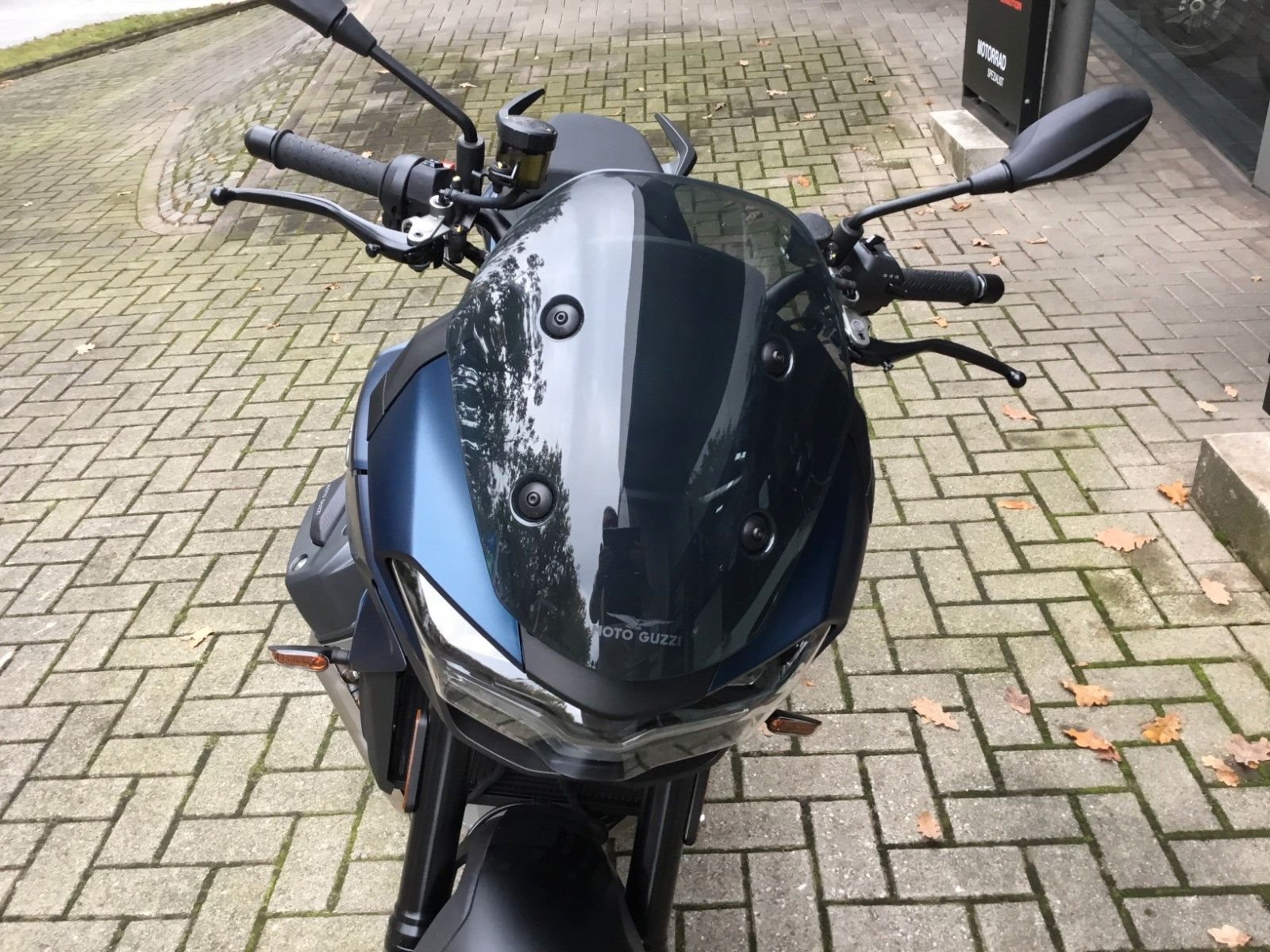 - Full-LED-Lichttechnik Zu den vielen serienmäßigen Details, die alles andere als Standard sind, gehört auch das Full-LED-Lichtpaket. Die Scheinwerfereinheit sorgt mit Kurvenlichtfunktion für mehr Sicherheit und beste Sichtbarkeit. Schön anzusehen spiegelt das LED-Tagfahrlicht unverwechselbar die Silhouette des Moto Guzzi Adlers wider.