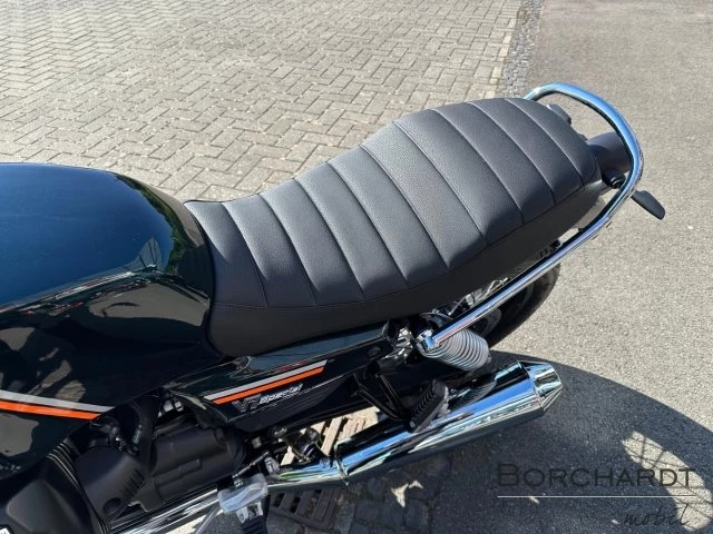SitzkomfortDie Raffinesse der Moto Guzzi V7 Special erstreckt sich auch auf die Elektronik, die ein vollständig anpassbares Fahrerlebnis ermöglicht. Das Multi-Map Ride by Wire sorgt für eine optimale Leistungsentfaltung, während die deaktivierbare MGCT (Moto Guzzi Traktionskontrolle) im Zusammenspiel mit den Riding Modes (ROAD und RAIN) für Sicherheit unter allen Bedingungen sorgt. Das ABS ermöglicht ein kontrolliertes Bremsen, und der Tempomat erhöht den Komfort auf langen Strecken. Das Motorrad verfügt über Full-LED mit Tagfahrlicht und ein digitales Cockpit.