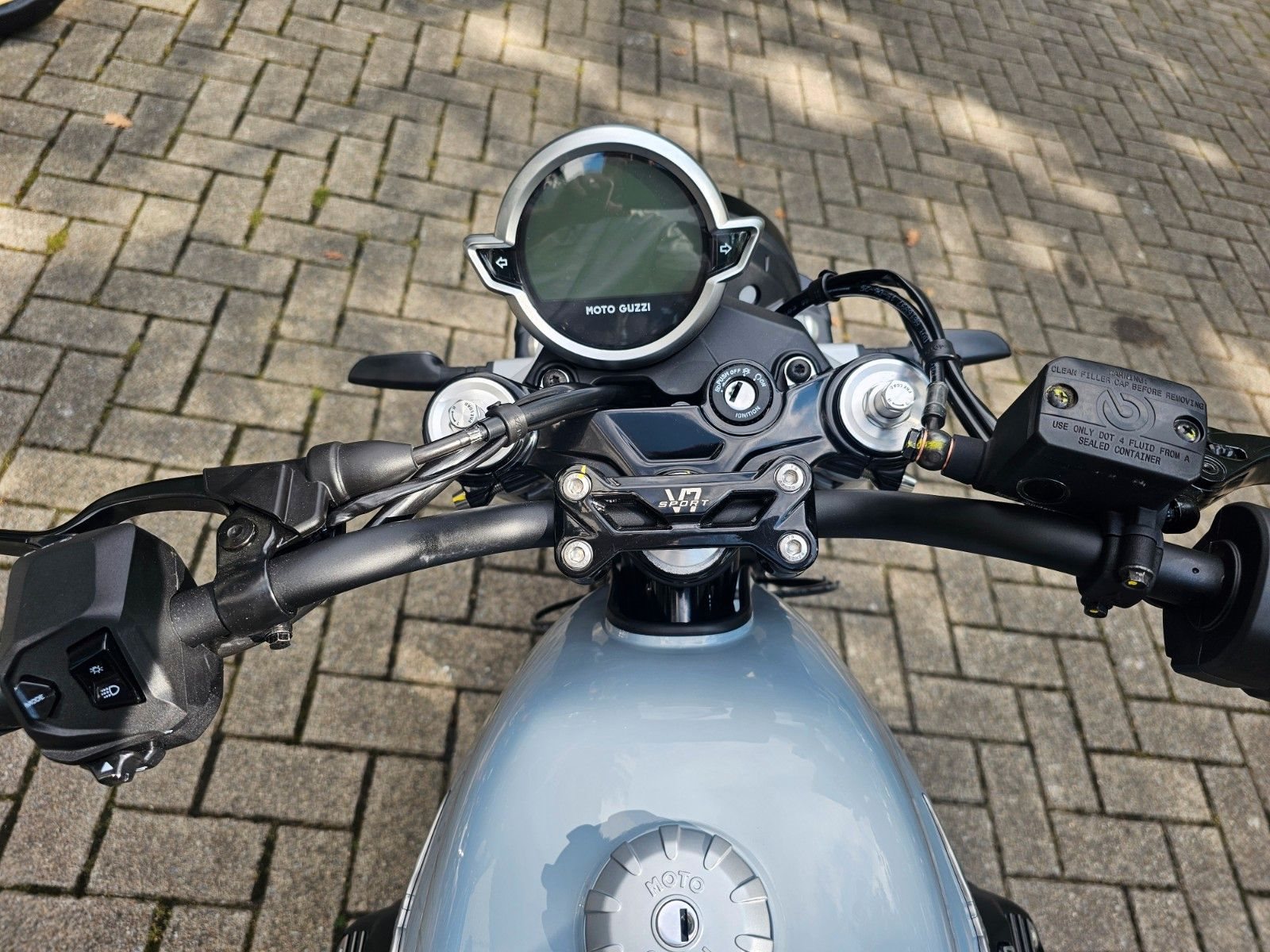 - Komfort Aus dem umfangreichen Zubehörkatalog lassen sich unter anderem das Moto Guzzi MIA-System, das per Bluetooth das Smartphone in ein zusätzliches Bedienelement verwandelt, sowie beheizbare Handgriffe und TPMS zur Reifendrucküberwachung optional hinzukonfigurieren.