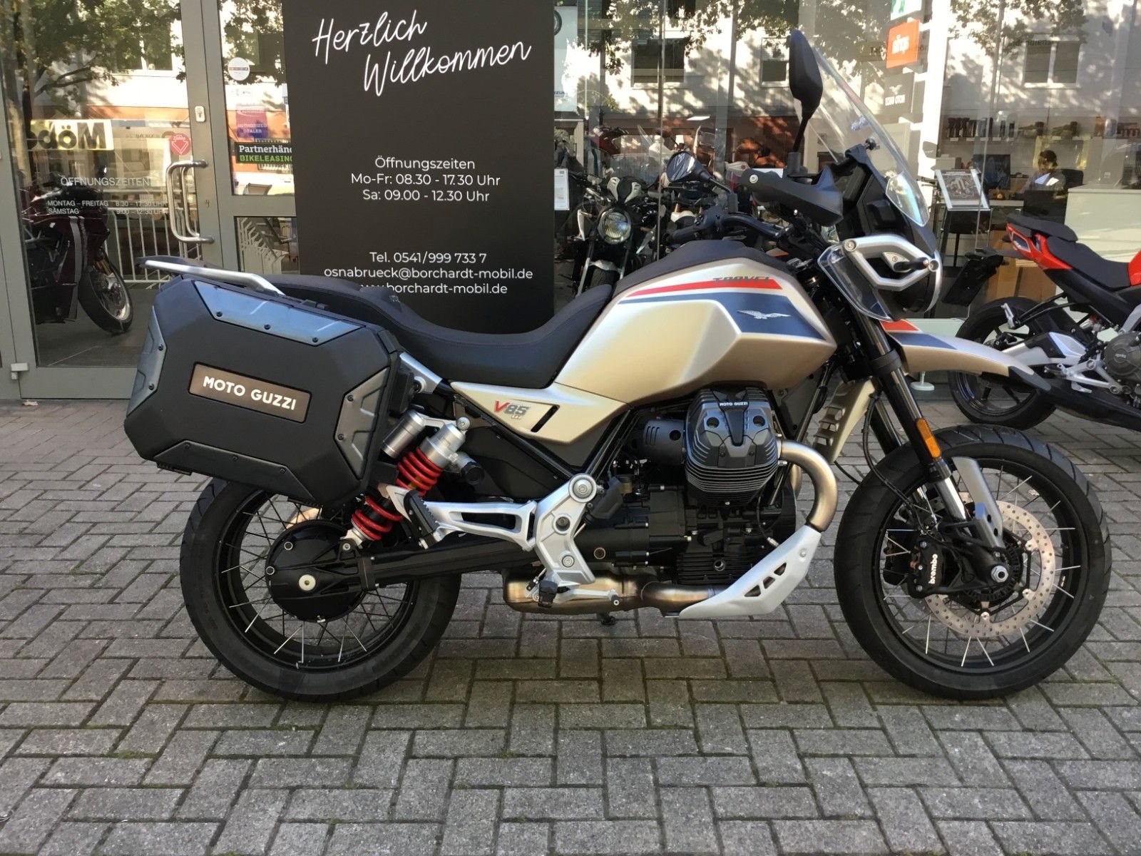 - ZUM REISEN GEBOREN Die Moto Guzzi V85 TT Travel ist ein unerschrockener Entdecker, der keinen Hehl daraus macht, dass er jeden Moment im Sattel zu einer tollen Reise machen will. Die serienmäßige Komplettausstattung macht das deutlich, vom schützenden Touring-Windschild über die Sitzheizung und Heizgriffe bis hin zu den stabilen Seitenkoffern mit ihrem großzügigen Fassungsvermögen. Ein umfangreiches Elektronik- und Multimediapaket erhöht nicht nur die Sicherheit und den Fahrspaß, sondern unterstreicht auch die Langstreckentauglichkeit dieses Motorrads. Egal, wie weit das Ziel entfernt ist, Hauptsache der Weg dorthin macht Spaß.