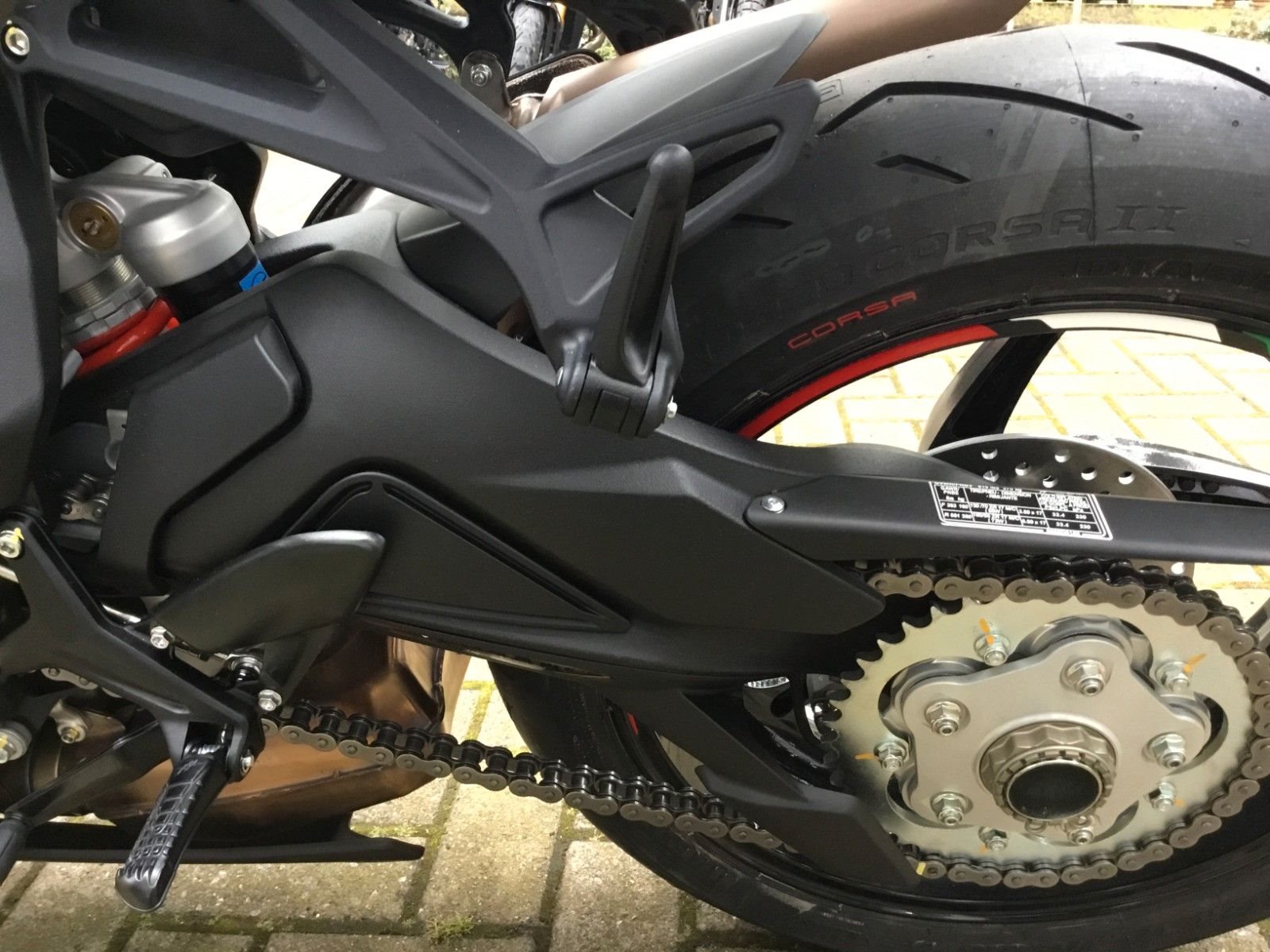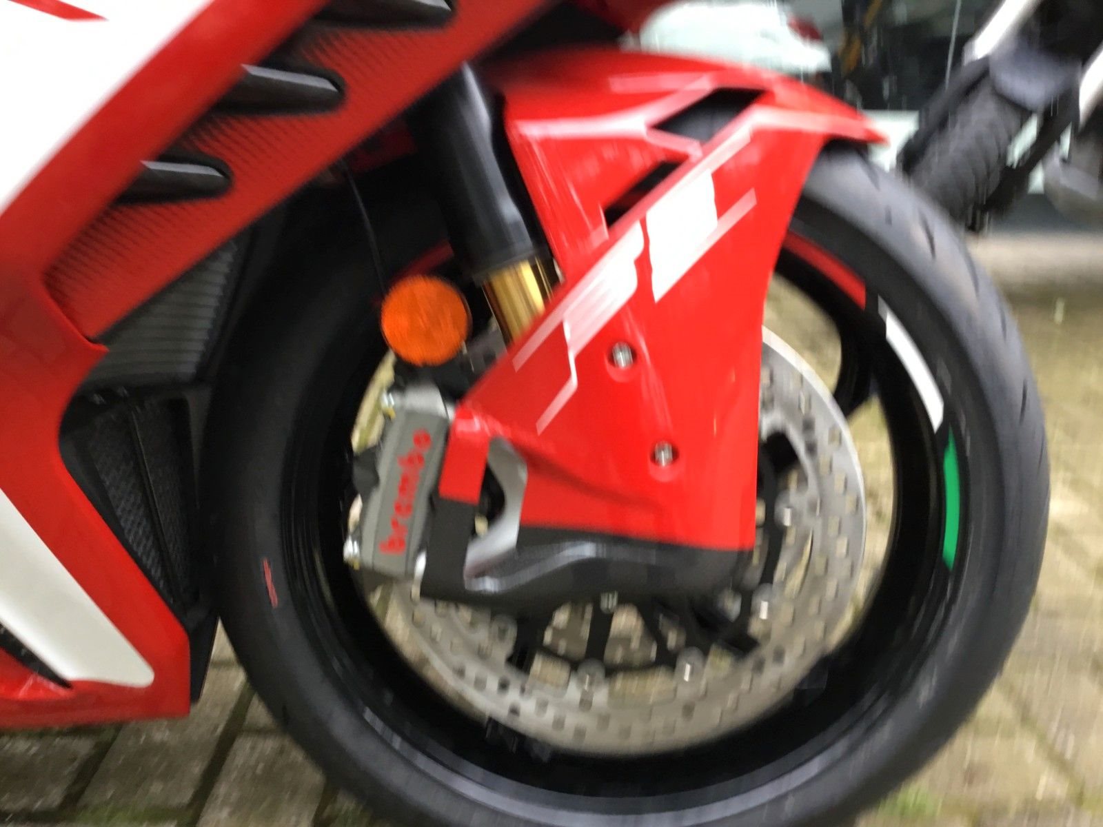 - SAFETY SICHERHEIT UND RACING-LEISTUNG Die Brembo-Bremsanlage bietet an der Vorderachse Vierkolben-Bremssättel und 320 mm-Schwimmscheiben. Das ABS ist ein Produkt von Continental: Das kompakte MK100 bietet ein System, um das Heben des Hinterrades zu reduzieren (RLM Rear Wheel Lift-Up Mitigation), sowie die Seitenführungsfunktion.