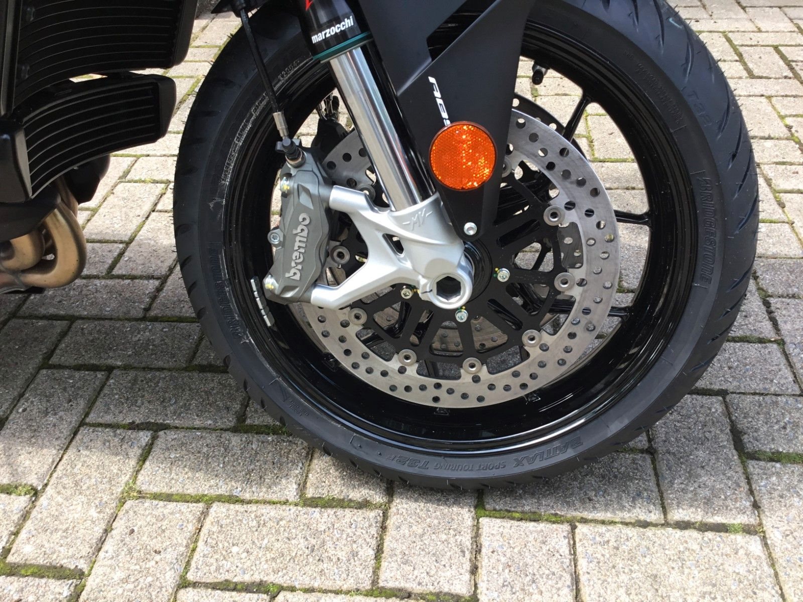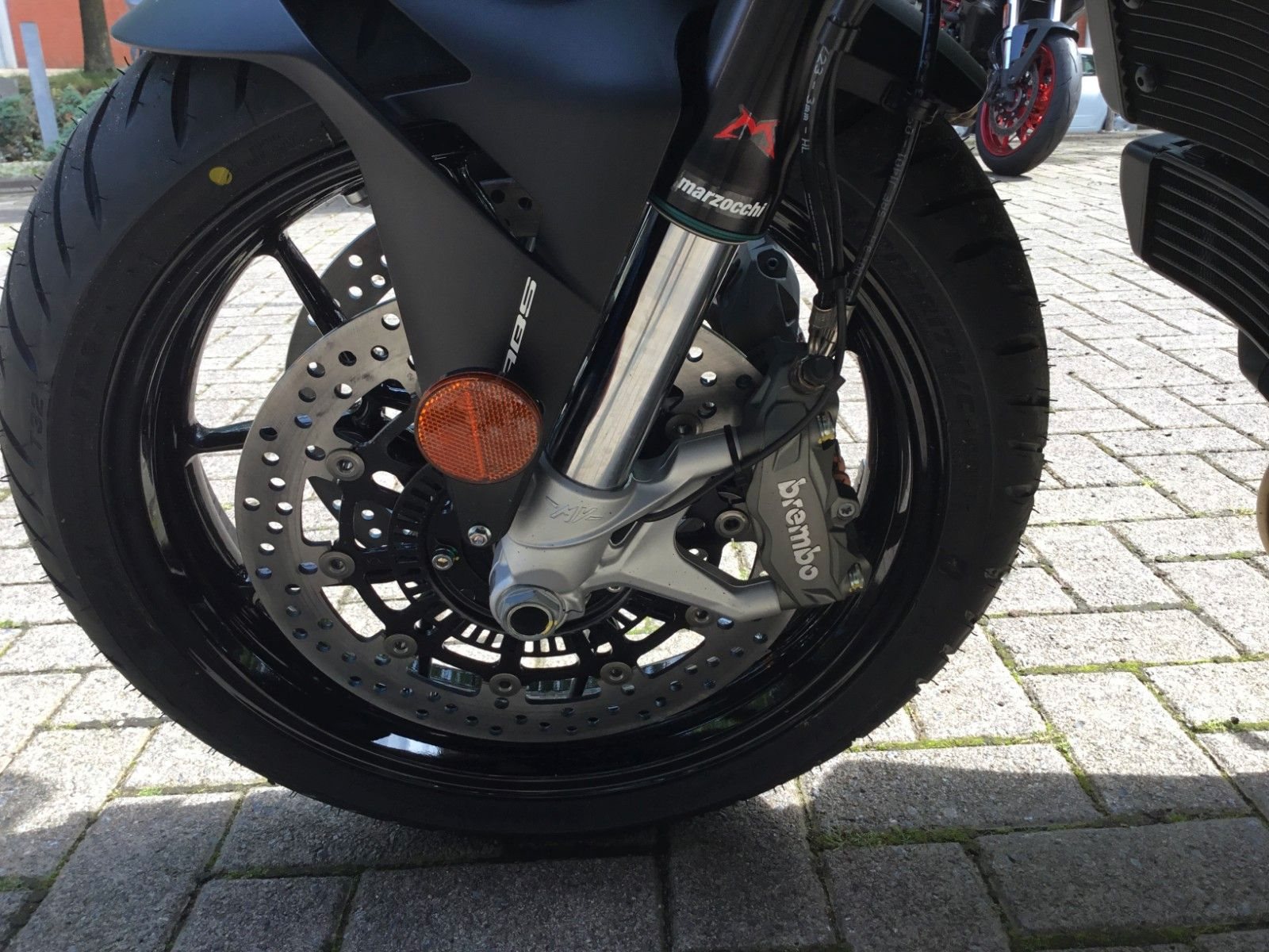 - SICHERHEIT Das von Brembo entwickelte Bremssystem besteht aus zwei Scheiben am Vorderrad mit 320 mm Durchmesser, radialen Bremssätteln und vier Kolben. Das Hightech-ABS stammt von Continental und verfügt über das besonders nützliche RLM-System (Rear Wheel Lift-Up Mitigation) und die Kurvenfunktion für maximale Sicherheit auch in Kurven.