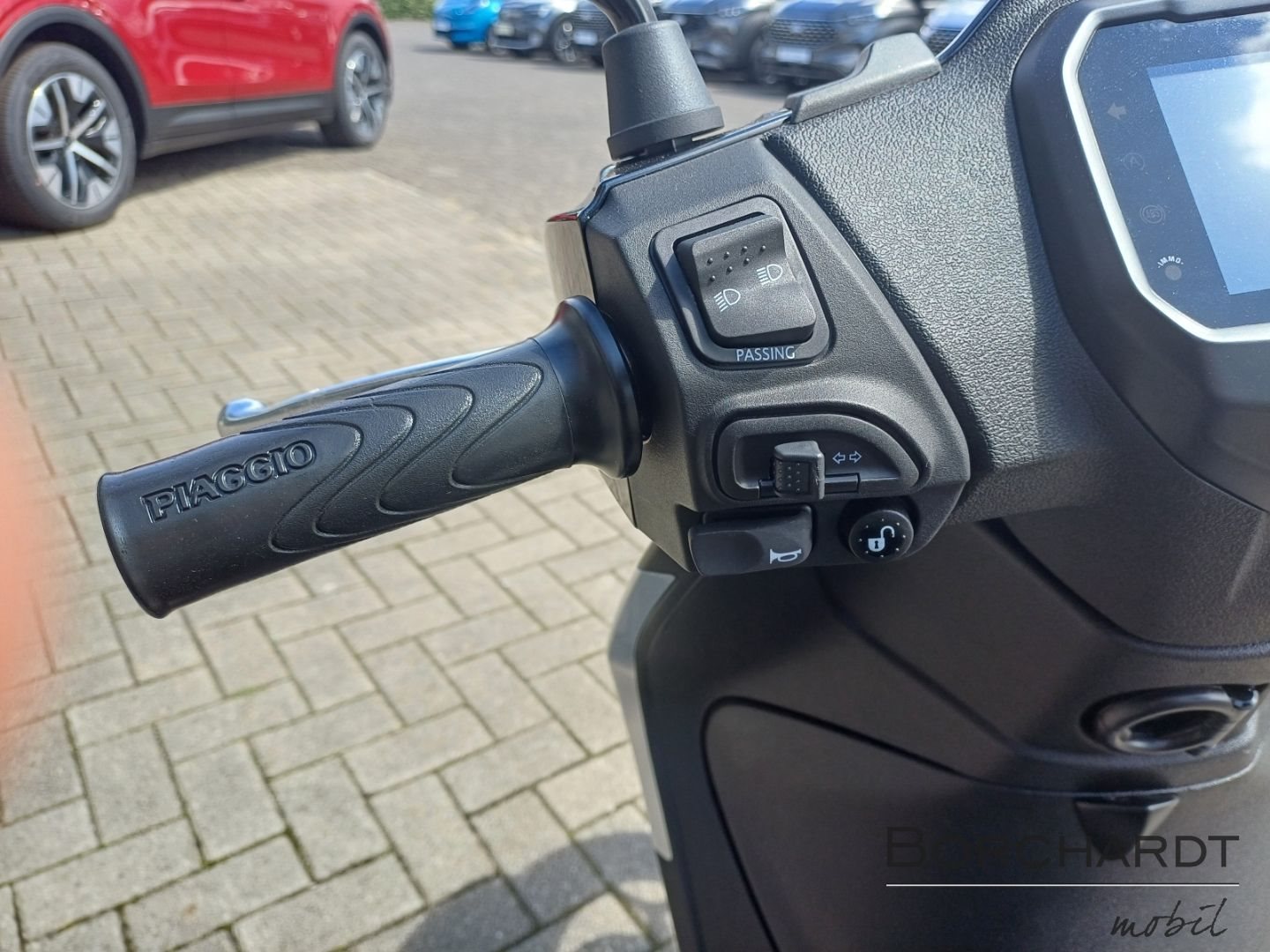 Noch smarterDas Fahrerlebnis mit dem Piaggio Liberty ist intuitiv und komfortabel. Eine 5,5 Zoll großes LCD-Anzeige passt die Day- und Night-Modi automatisch an, um jederzeit optimale Sichtverhältnisse zu gewährleisten. Wichtige Informationen wie Verbrauch, Reichweite und Bordcomputer-Daten sind stets verfügbar und lassen sich bequem über den Mode-Knopf am Lenker steuern. Zudem verbessert der horizontal ausgerichtete LED-Scheinwerfer die Sichtbarkeit auf der Straße und sorgt für eine sofort erkennbare Lichtsignatur.