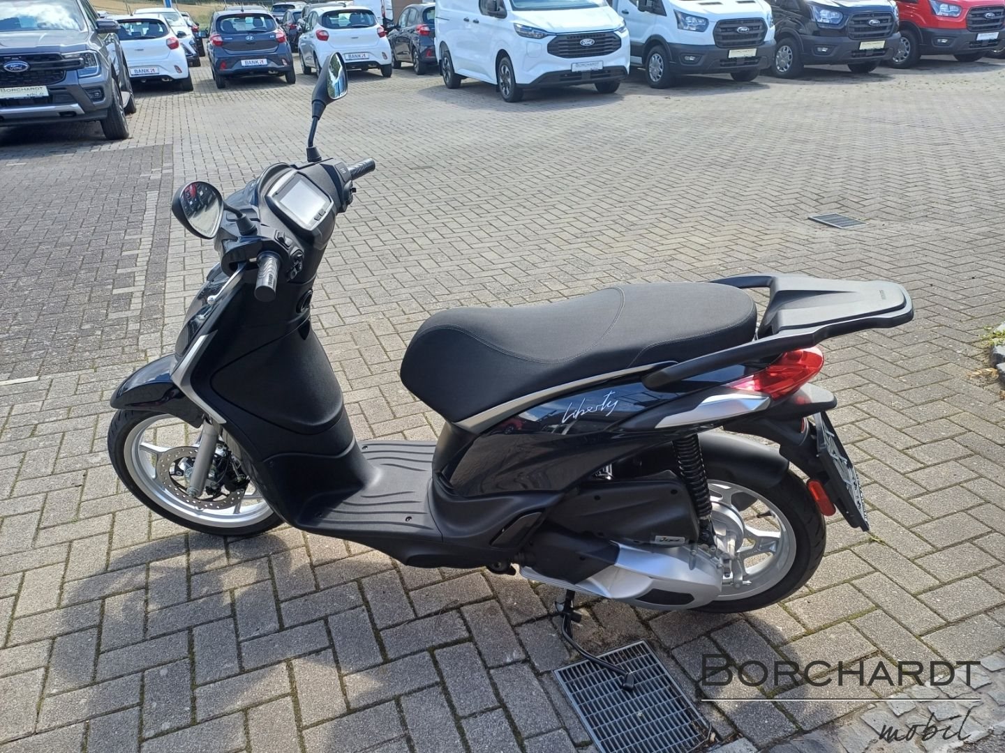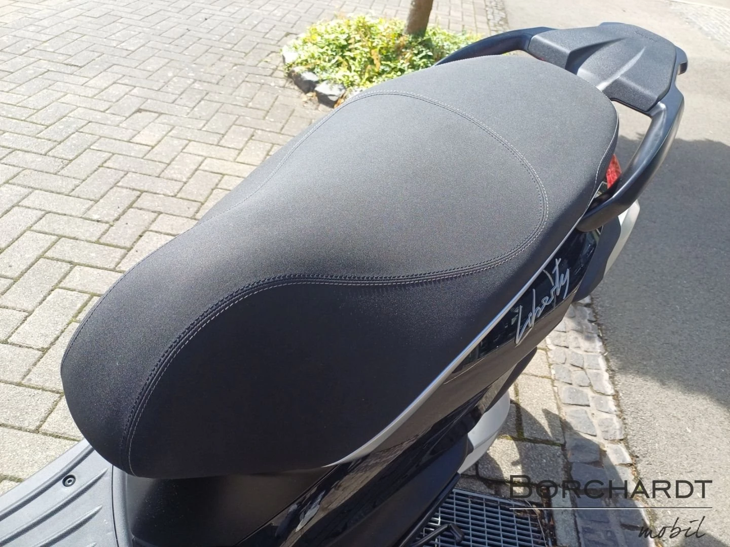 Freiheit auf zwei RädernDer Piaggio Liberty ist das ideale Fahrzeug für schnelle und sichere Fahrten in der Stadt. Der hochfeste Stahlrahmen, das große Vorderrad und die optimierte Ergonomie sorgen für ein stets komfortables und sicheres Fahrerlebnis - perfekt für alle, die eine verlässliche Mobilitätslösung für den Alltag suchen. Der Einzylinder-Viertaktmotor mit i-get Technologie, Euro-5+ Norm, Luftkühlung und optimierter elektronischer Einspritzung ermöglicht eine sanfte Fahrt und niedrigen Verbrauch von nur 2,5 Litern auf 100 km nach WMTC. Ein agiler und sicherer Roller mit großen Rädern, bereit für die Herausforderungen des Stadtverkehrs.