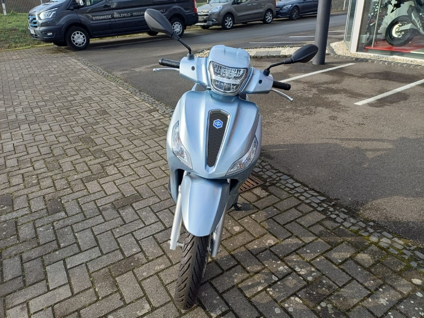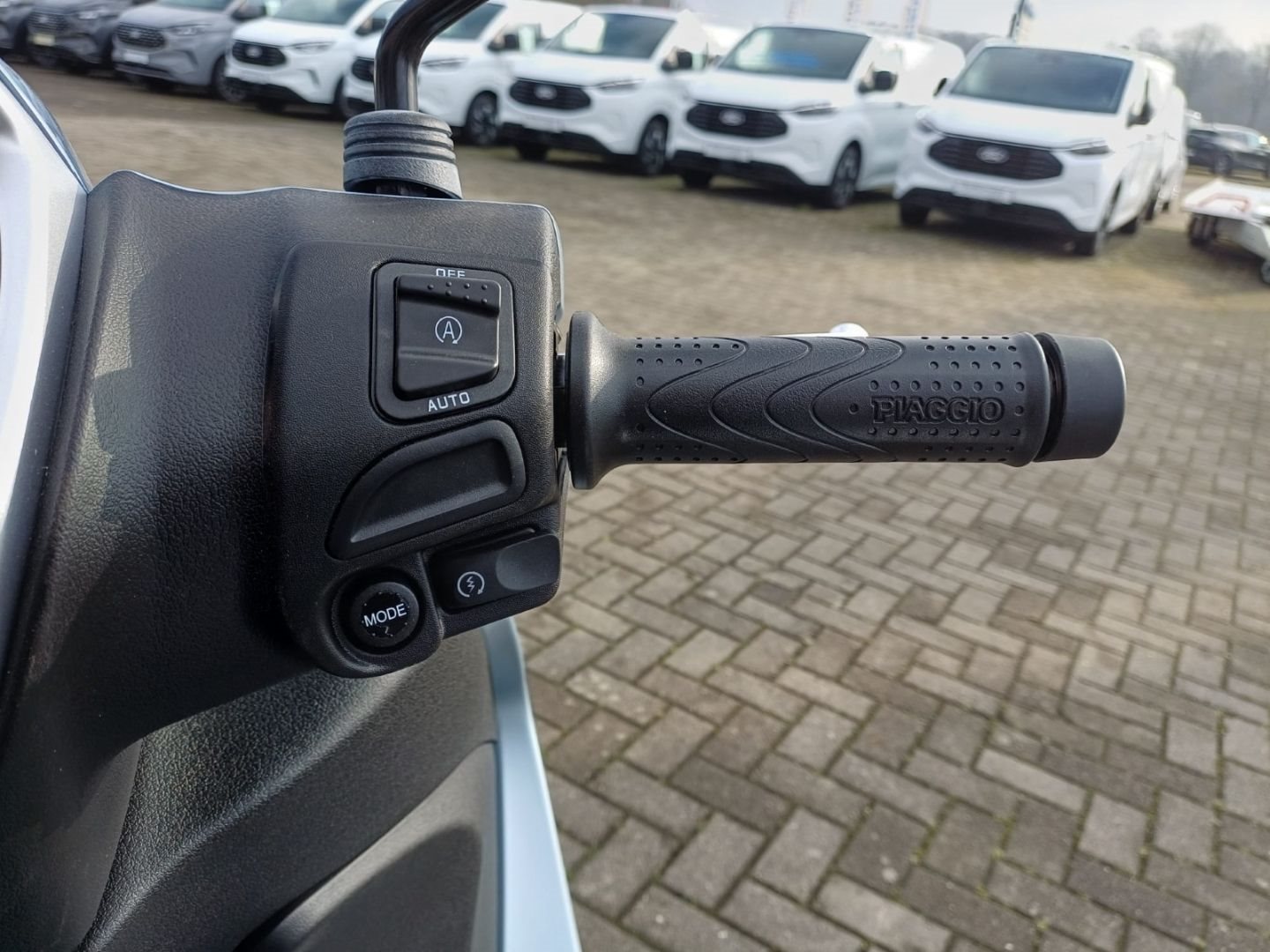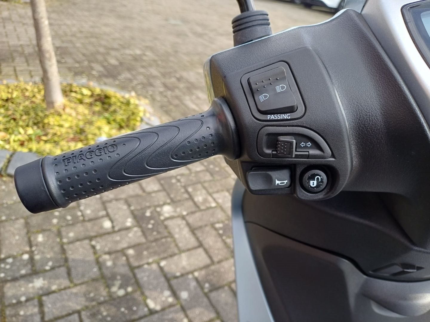 Technologie immer in BewegungDie schützende, aber dennoch schlanke Frontpartie bietet Platz für den LED-Frontscheinwerfer, der für optimale Sicht unter allen Bedingungen sorgt, sowie für das digitale LCD-Cockpit. Noch nie war es so einfach, vernetzt zu reisen: Das Piaggio MIA-System (serienmäßig in der S-Version oder als Zubehör erhältlich) ermöglicht es dir, dein Smartphone über Bluetooth mit dem Fahrzeug zu verbinden und Telefonanrufe, Sprachbefehle und Musik über das Cockpit und die Bedienelemente am Lenker zu steuern.