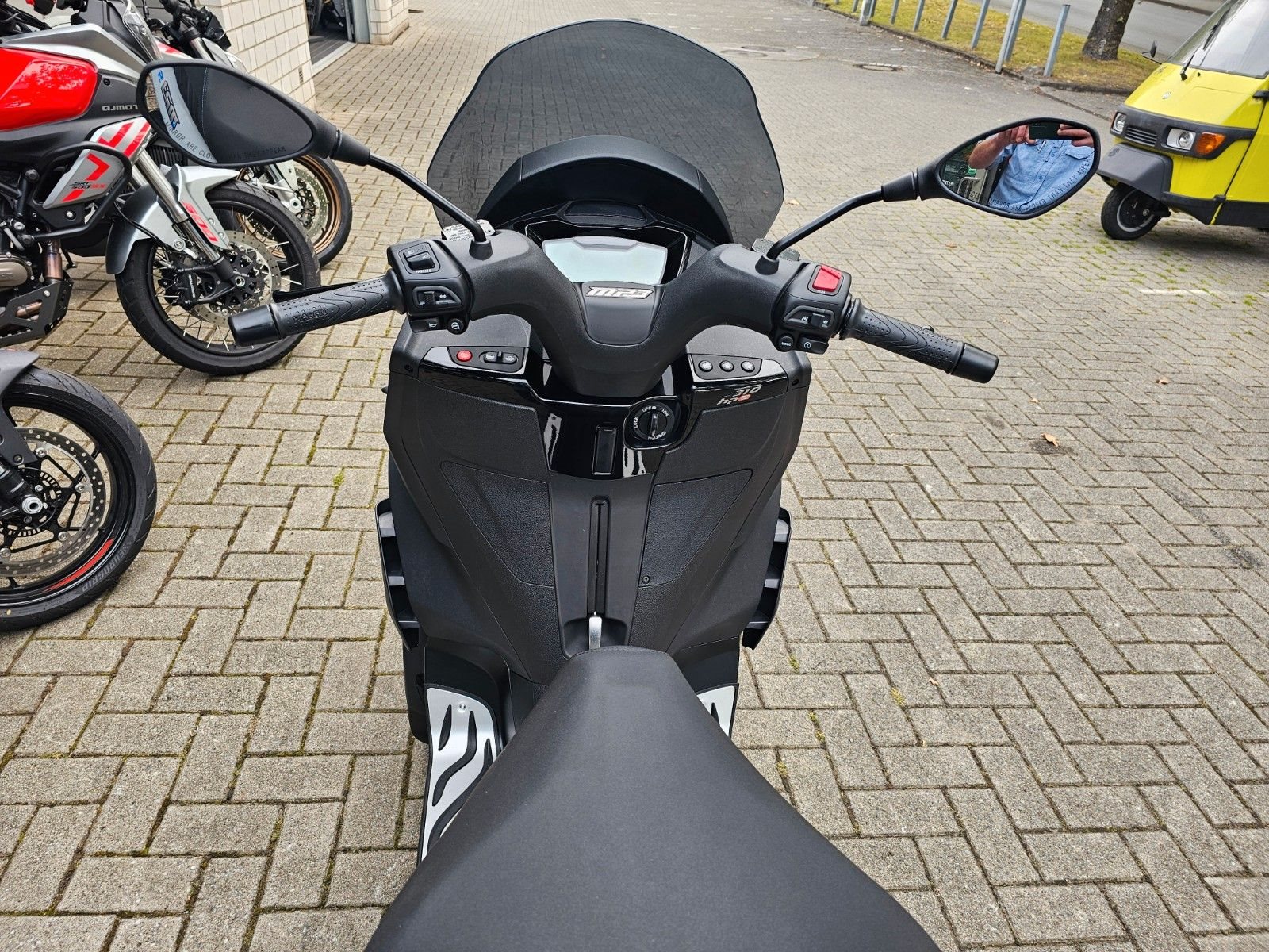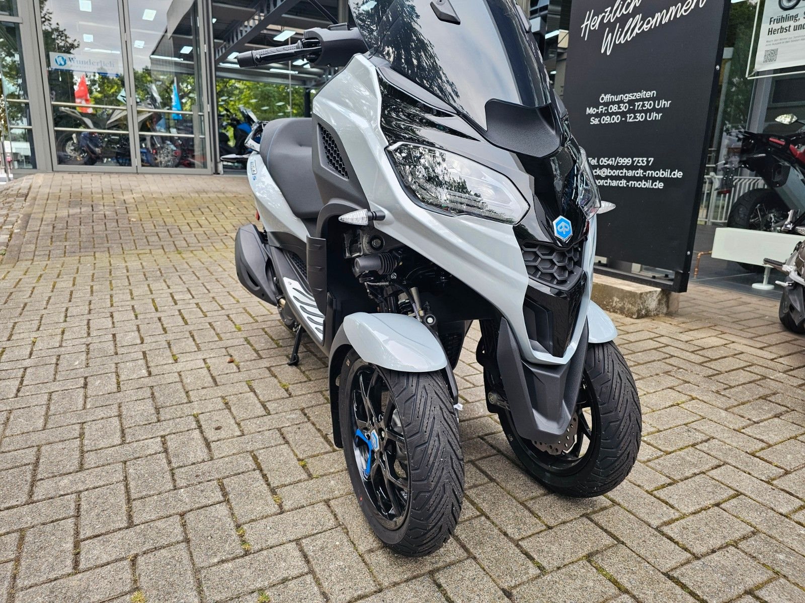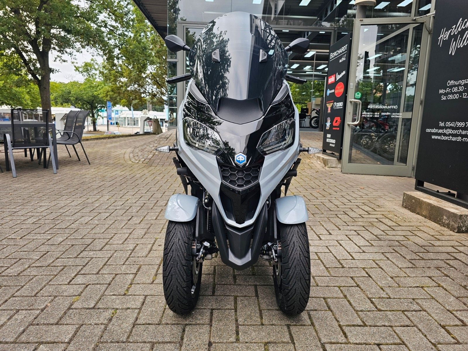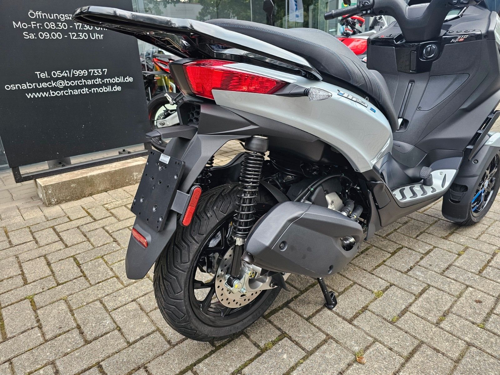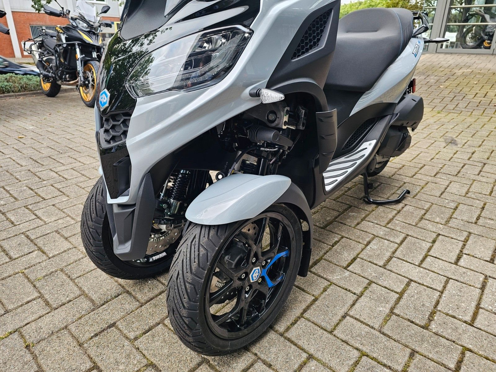 - Sportlicher AuftrittDas moderne, sportliche Design des MP3 310, das sich harmonisch mit der markanten Frontpartie verbindet, schafft eine schlanke, leichte Silhouette. Die einzigartige Front mit ihren zwei Vorderrädern wird durch sportive Radabdeckungen in Fahrzeugfarbe abgerundet. LED-Tagfahrlicht und ein großes LCD-Display unterstreichen den technischen Anspruch und den sportlichen Charakter. Sein Kombibremssystem mit 3-Kanal-ABS und die Traktionskontrolle sorgen auf rutschigem und unebenem Untergrund für ein Plus an Sicherheit. Agil und handlich garantiert der MP3 310 Fahrspaß vom Feinsten.