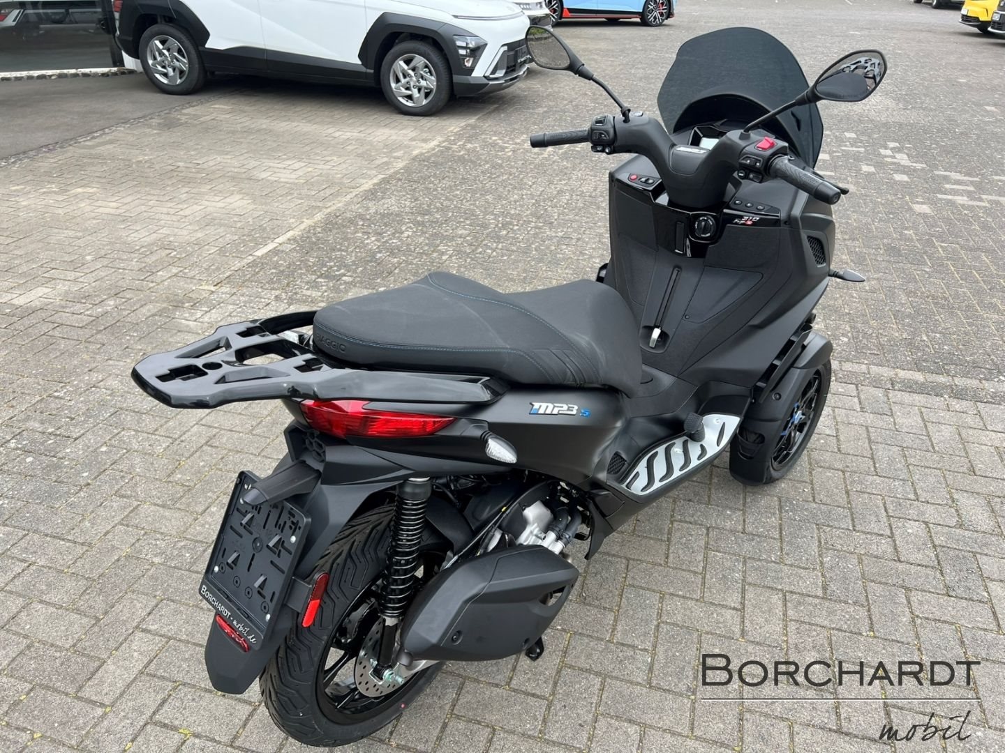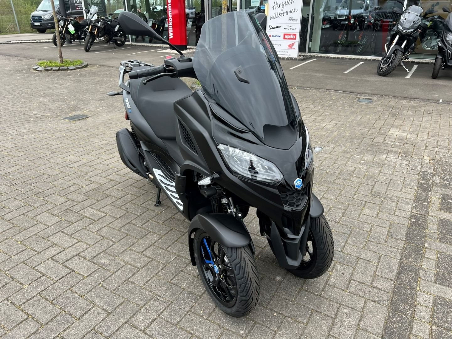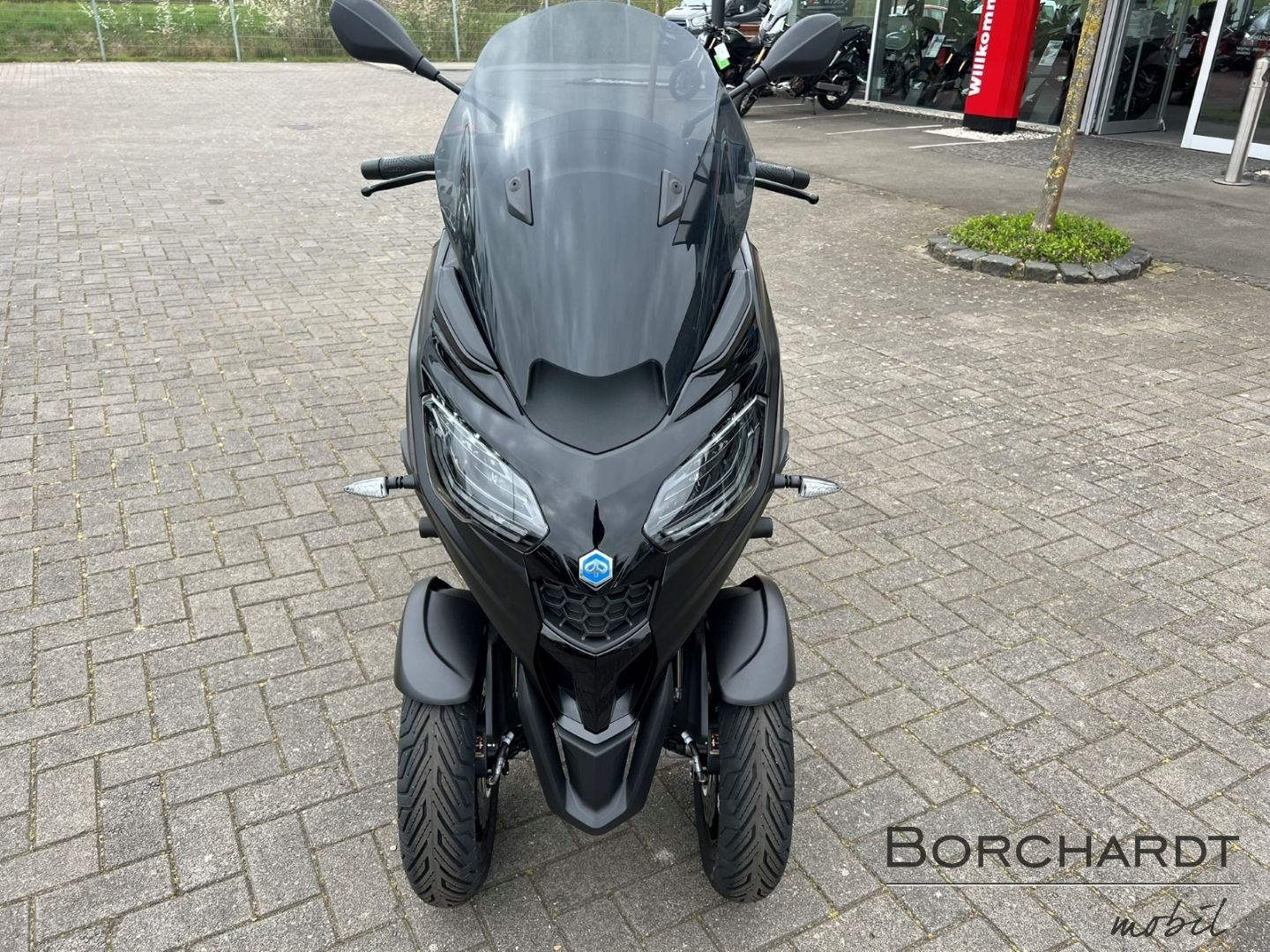 Für alles bereitDie Bremsleistung des Piaggio MP3 310 Sport wird durch Scheibenbremsen an allen drei Rädern gewährleistet, wobei die vorderen Scheiben ein Wellenprofil aufweisen. Abgerundet wird die exklusive "Sport"-Ausstattung durch das serienmäßige Piaggio MIA, das Ihr Smartphone über Bluetooth verbindet.