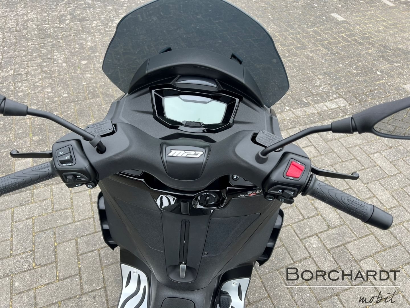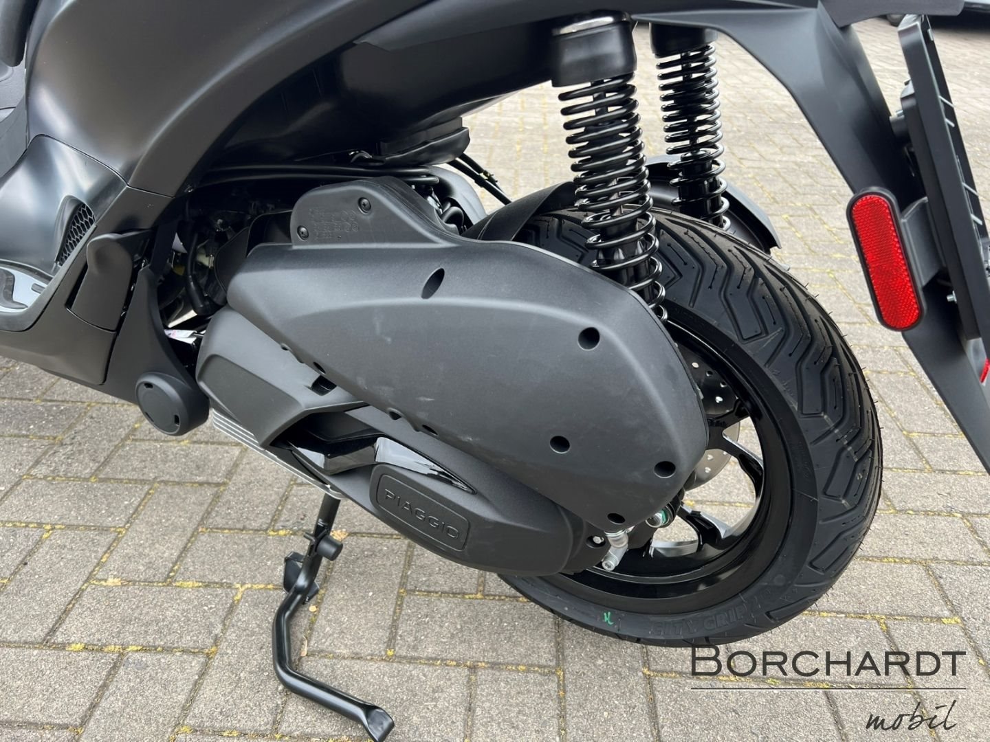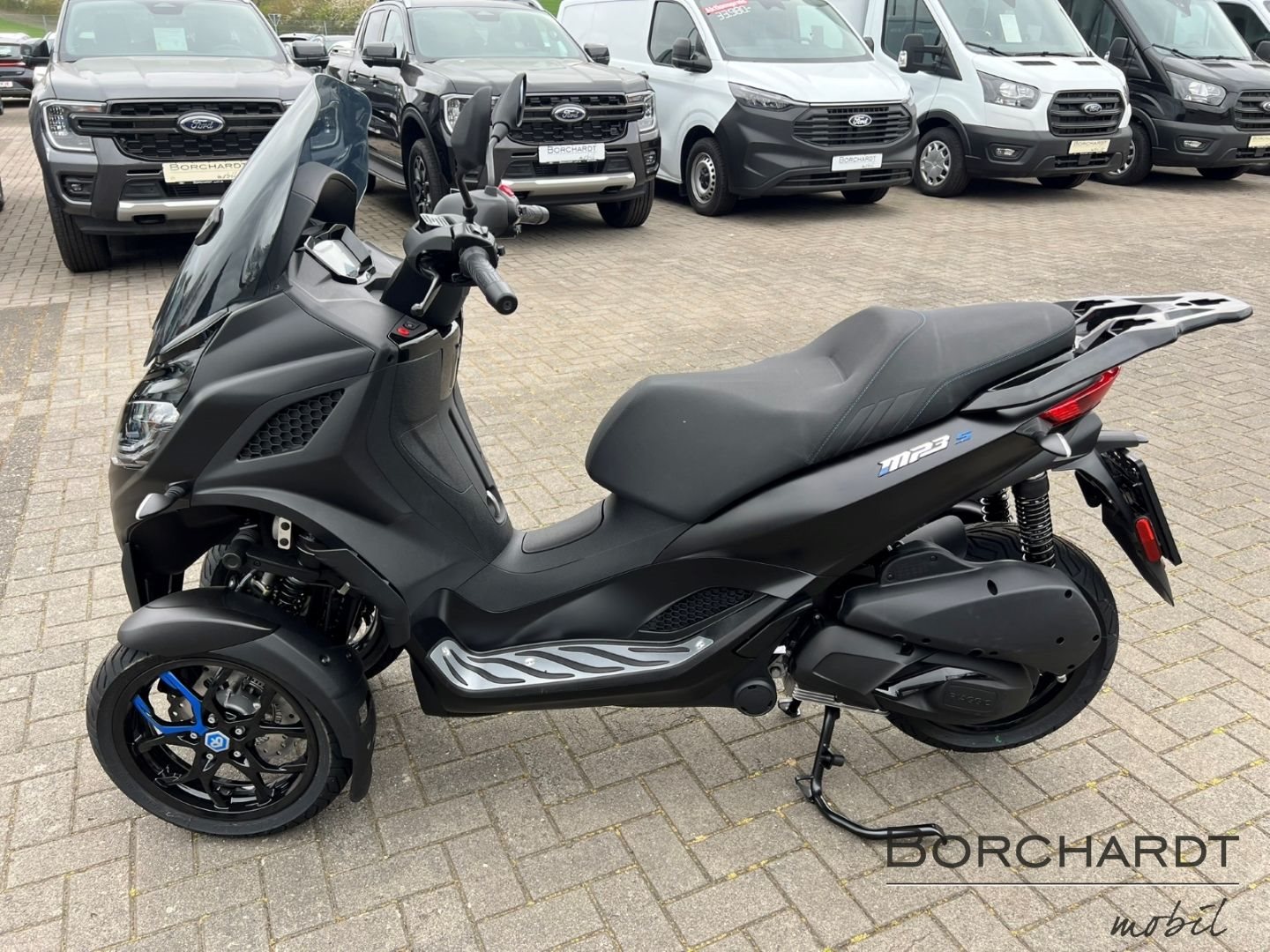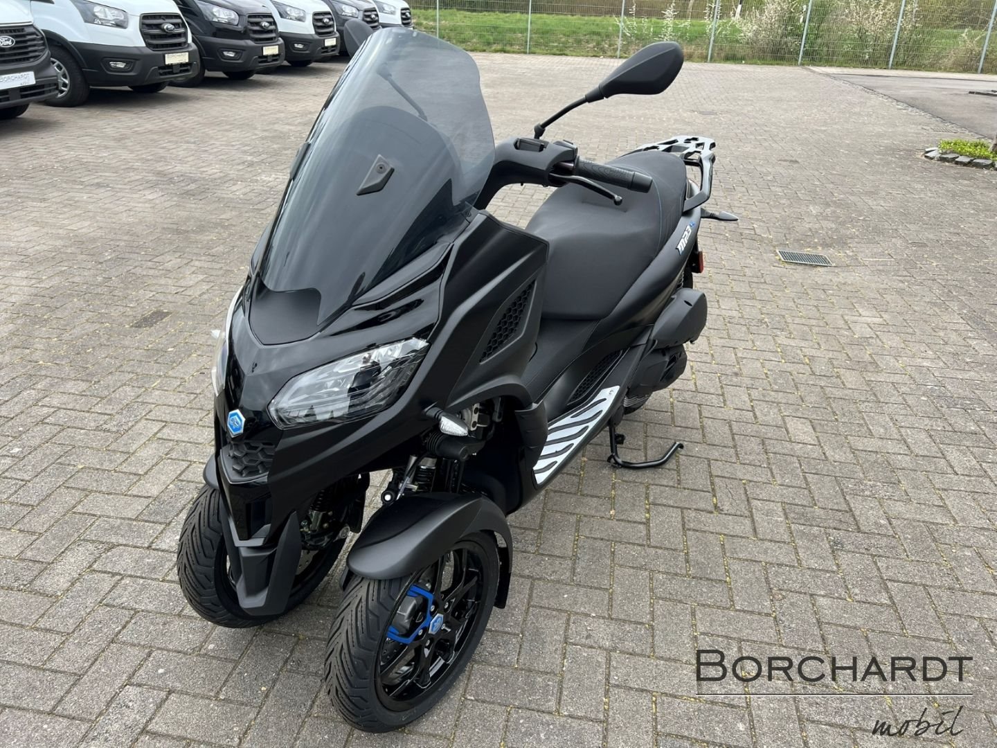 Für alles bereitDie Bremsleistung des Piaggio MP3 310 Sport wird durch Scheibenbremsen an allen drei Rädern gewährleistet, wobei die vorderen Scheiben ein Wellenprofil aufweisen. Abgerundet wird die exklusive "Sport"-Ausstattung durch das serienmäßige Piaggio MIA, das Ihr Smartphone über Bluetooth verbindet.