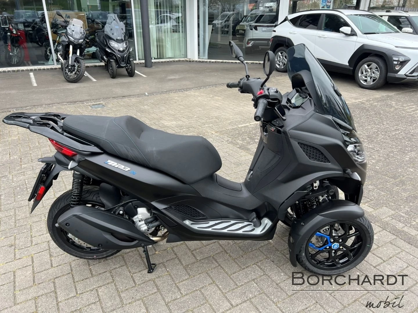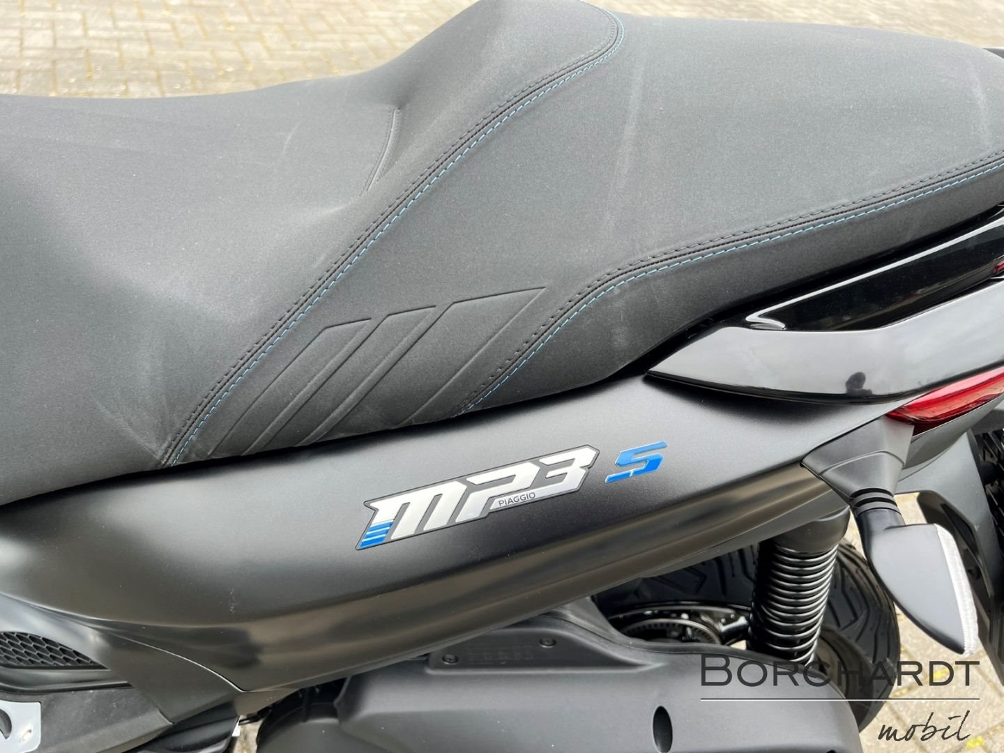 Einzigartiger CharakterDer Piaggio MP3 310 Sport zieht mit seiner modern geformten Frontpartie und einer Farbgebung, die das stromlinienförmige, vom Automobilbau inspirierte Design unterstreicht, überall die Blicke auf sich. Details wie die blaue Sattelnaht und die Decals auf den schwarzen Vorderradfelgen sorgen ebenfalls für Aufsehen, während ein Mix aus matt- und glänzend-schwarzen Oberflächen und der Fußraum mit seinem Aluminiumeinsatz den sportlichen Look vervollständigen. Diese perfekte Mischung aus Eleganz und Aggressivität, die mit einem B-Führerschein erworben werden kann, ist für Fahrer gedacht, die Stil und Leistung in einem weltweit einzigartigen Fahrzeug suchen.