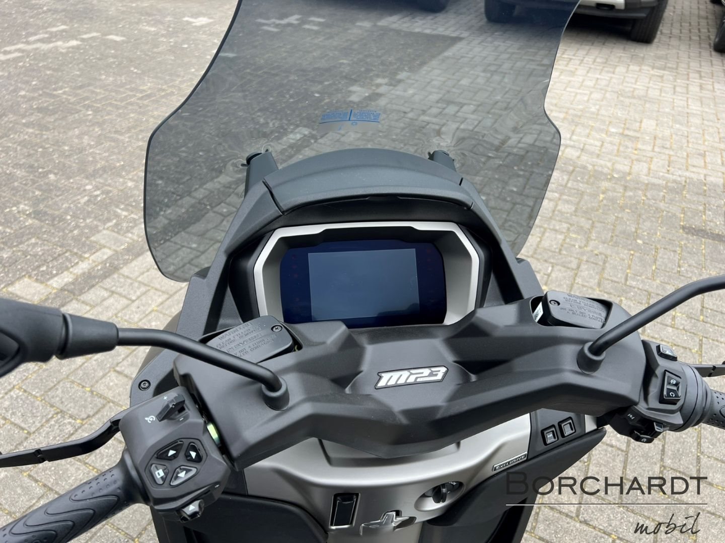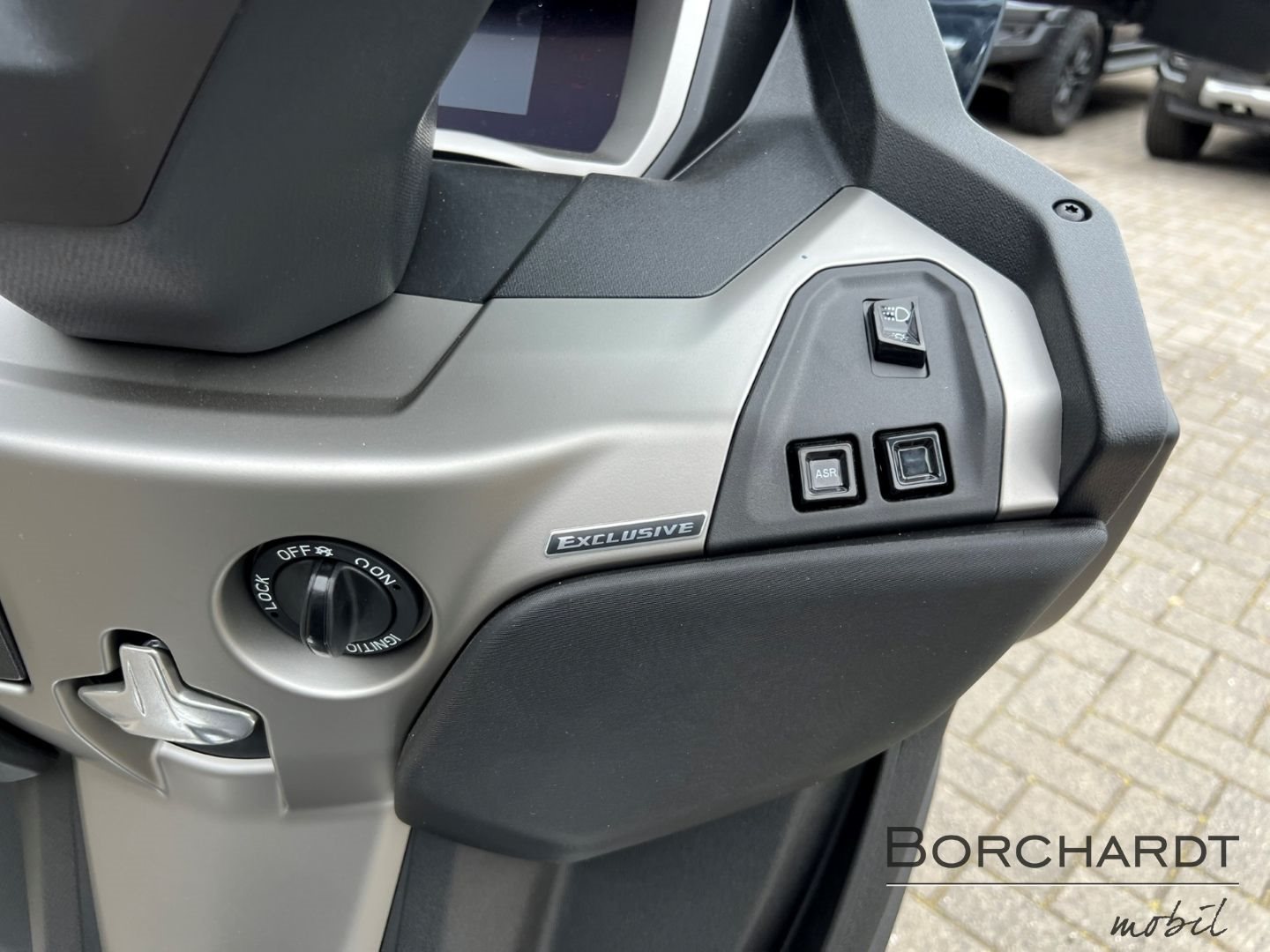 Das futuristische, aus dem Automobilbereich stammende ARAS (Advanced Rider Assistance System) unterstützt das Fahren und erhöht die Sicherheit, indem es eine Reihe von Funktionen anzeigt, einschließlich potenziell gefährlicher Situationen. Hinzu kommt das äußerst praktische Keyless-System, mit dem sich die Zündung einschalten und die Ablagefächer öffnen lassen, ohne dass ein Schlüssel eingesteckt werden muss.