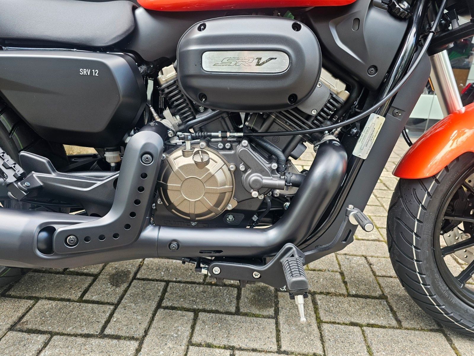 - Die SRV12 ist ein agiles Fahrzeug mit einem 125 cm V-Zweizylinder-4-Takt-Motor. Der flüssigkeitsgekühlte Antrieb sorgt für konstante Leistung und Zuverlässigkeit. Mit einem Gewicht von 163 kg bietet sie ein ausgewogenes Handling und ist ideal für Einsteiger und erfahrene Fahrer gleichermaßen.