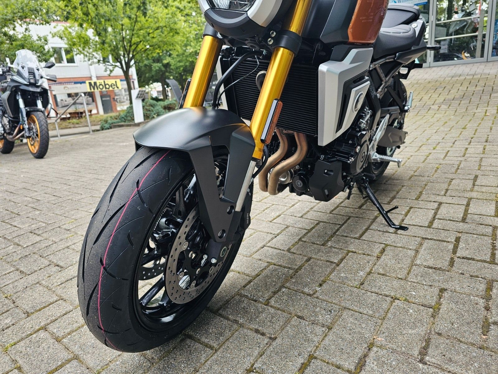 • Einmal zum ersten Mal Kommt klassisch, ist aber zum ersten Mal serienmäßig bei einer Suzuki: die am Lenkerende montierten Spiegel. Sie integrieren sich perfekt in den Look der GSX-8T, werden dich aber auch funktional überzeugen. Durch ihre Position hast du ein offenes, größeres Sichtfeld.