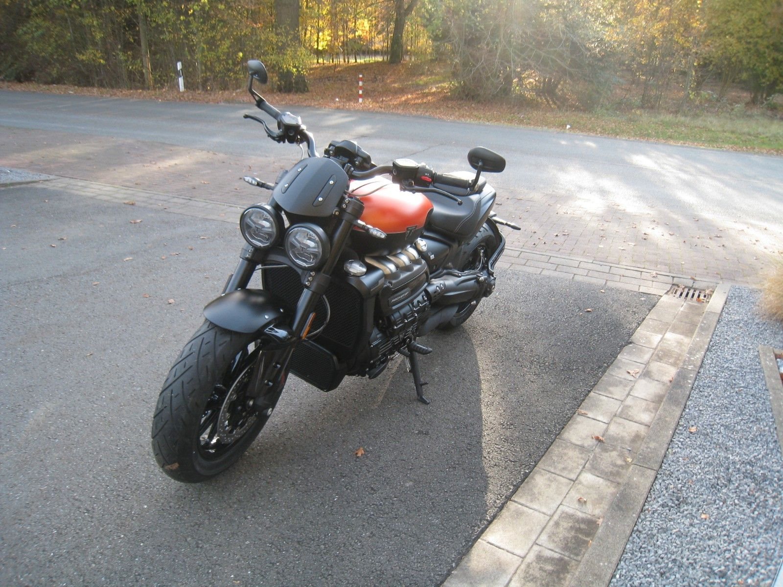 - Die Triumph Rocket 3 Storm R ist ein leistungsstarker, tourentauglicher Cruiser, der durch den größten in Serie gebauten Motorradmotor der Welt eine imposante Erscheinung mit souveräner Performance vereint. Mit seinem markanten, dunkel gehaltenen Auftritt hebt er sich deutlich ab.Motor und Leistung