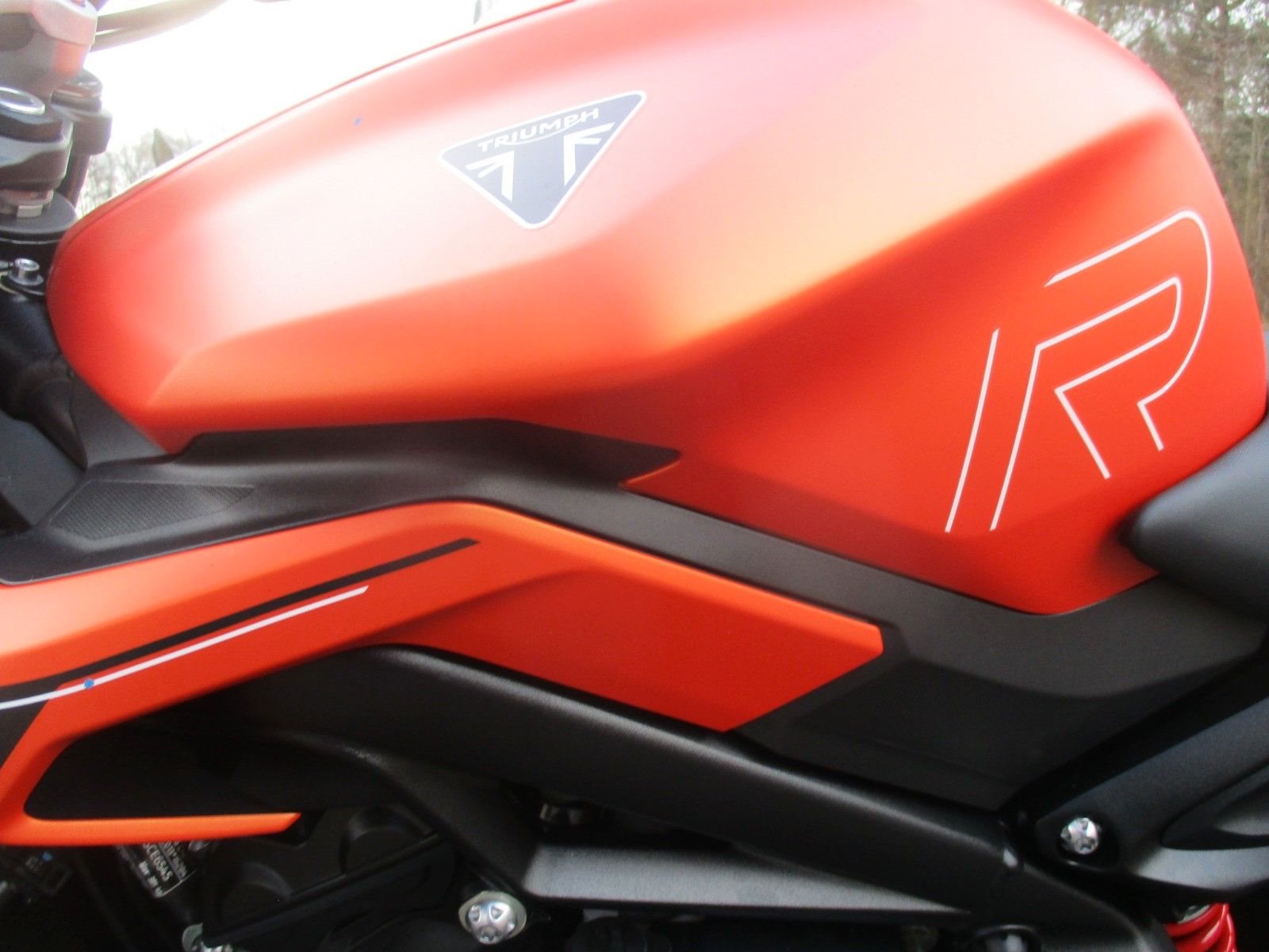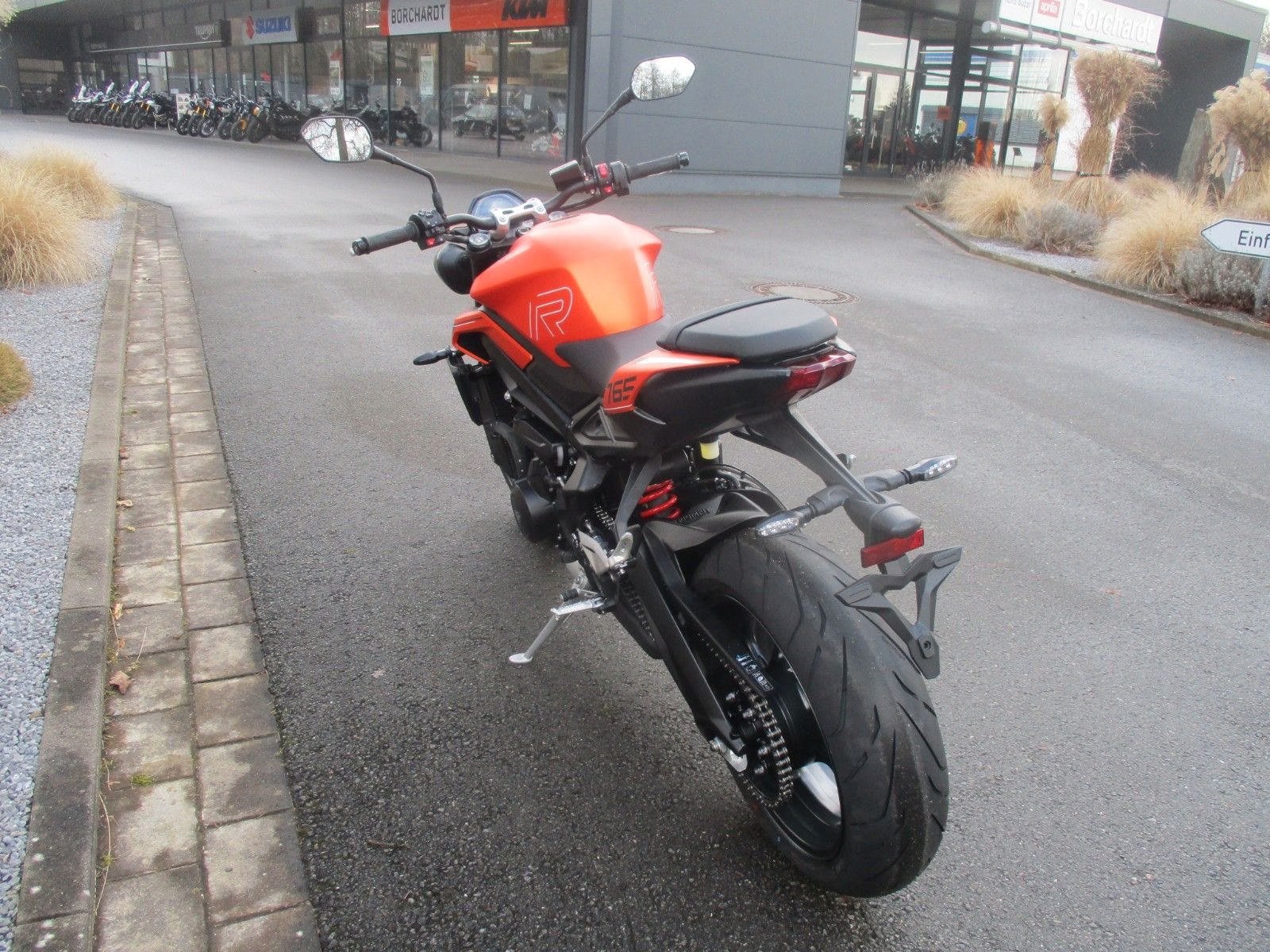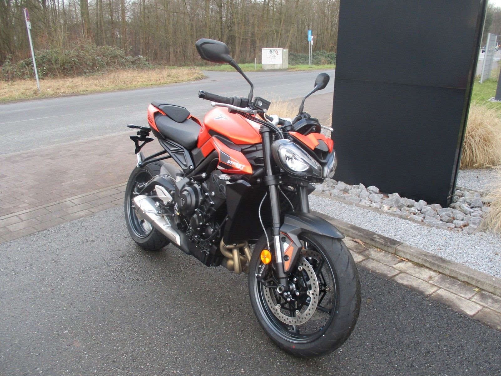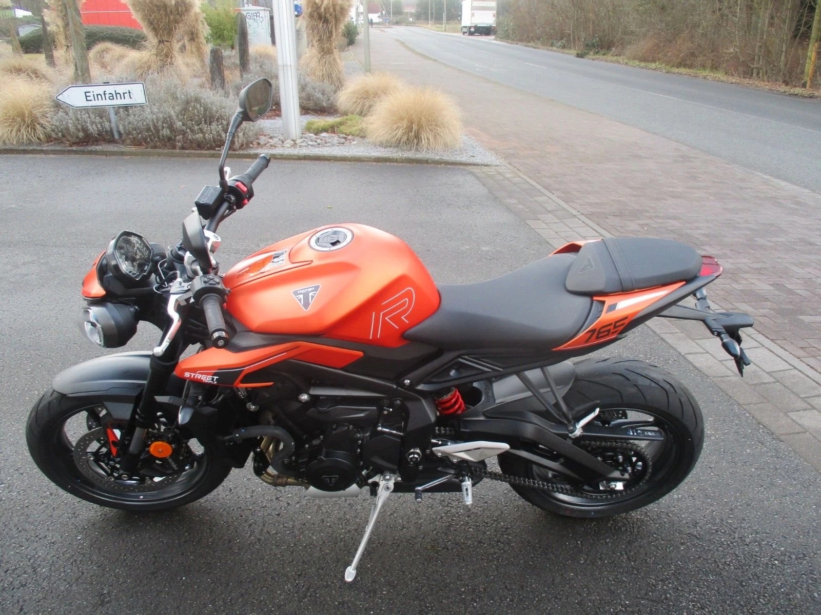 Die Triumph Street Triple R ist ein Naked Bike der Mittelklasse, das sich durch seinen charakterstarken Dreizylinder-Motor und ein dynamisches, präzises Handling auszeichnet. Sie gilt als eine sportliche und einzigartige Wahl in ihrem Segment.Motor und Leistung* Motor: Herzstück der Street Triple R ist der flüssigkeitsgekühlte 765-cm-Reihen-Dreizylinder-Motor. Das Aggregat der neueren Modelle (ab 2023) basiert auf der Moto2-Renntechnologie und ist besonders drehfreudig.