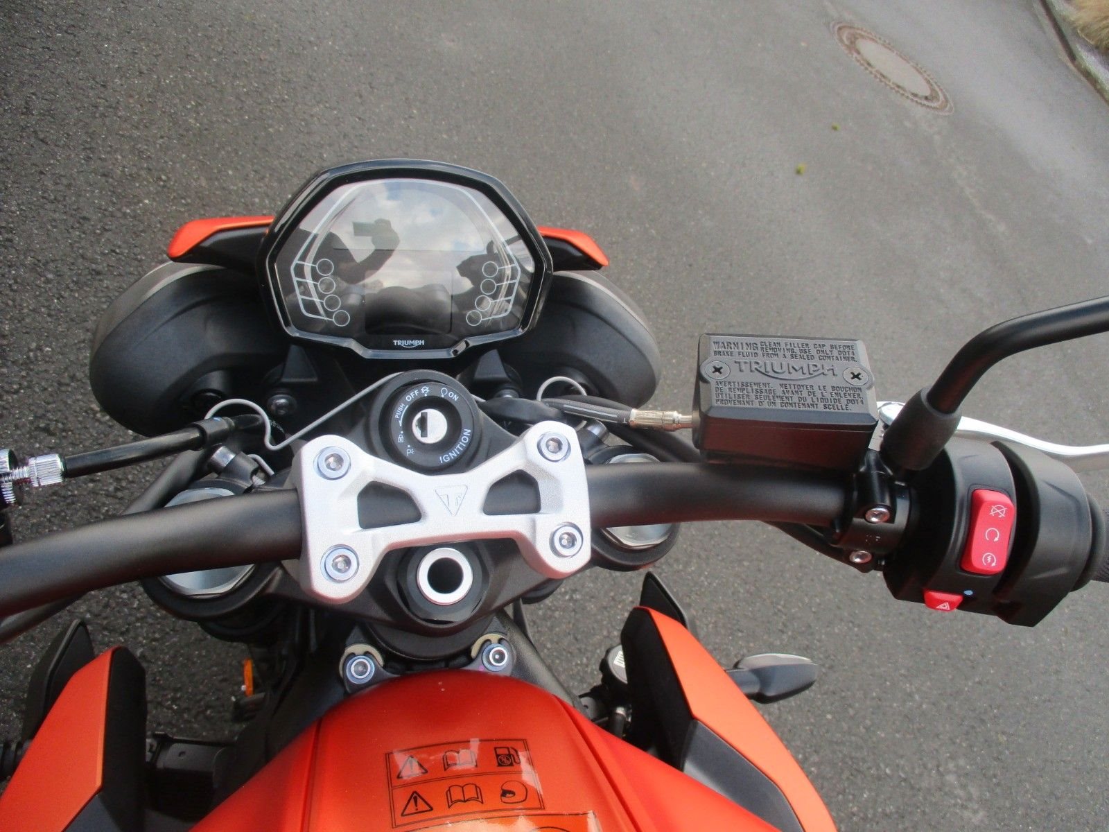 - Fahrwerk: Die Street Triple R ist mit voll einstellbaren Fahrwerkskomponenten von Showa ausgestattet, darunter eine Upside-down-Gabel und ein Monofederbein mit Ausgleichsbehälter. Dies ermöglicht eine präzise Anpassung an den Fahrstil.
