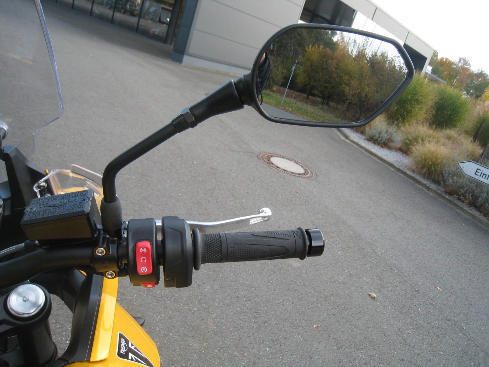 - Fahrwerk & Handling: Die Tiger 900 bietet ein stabiles Gitterrohrfahrwerk und hochwertige, je nach Modell einstellbare Fahrwerkskomponenten (z.B. von Marzocchi oder Showa), die sowohl auf der Straße als auch im leichten Gelände eine gute Figur machen.