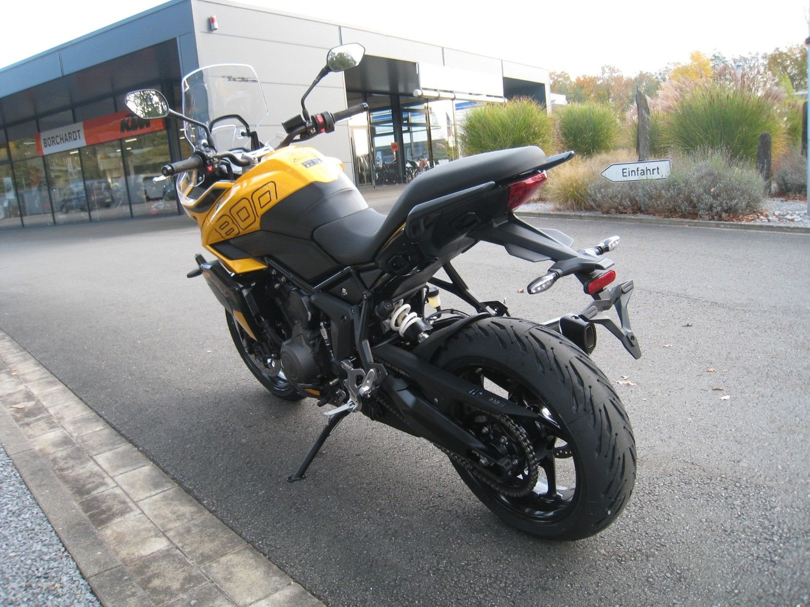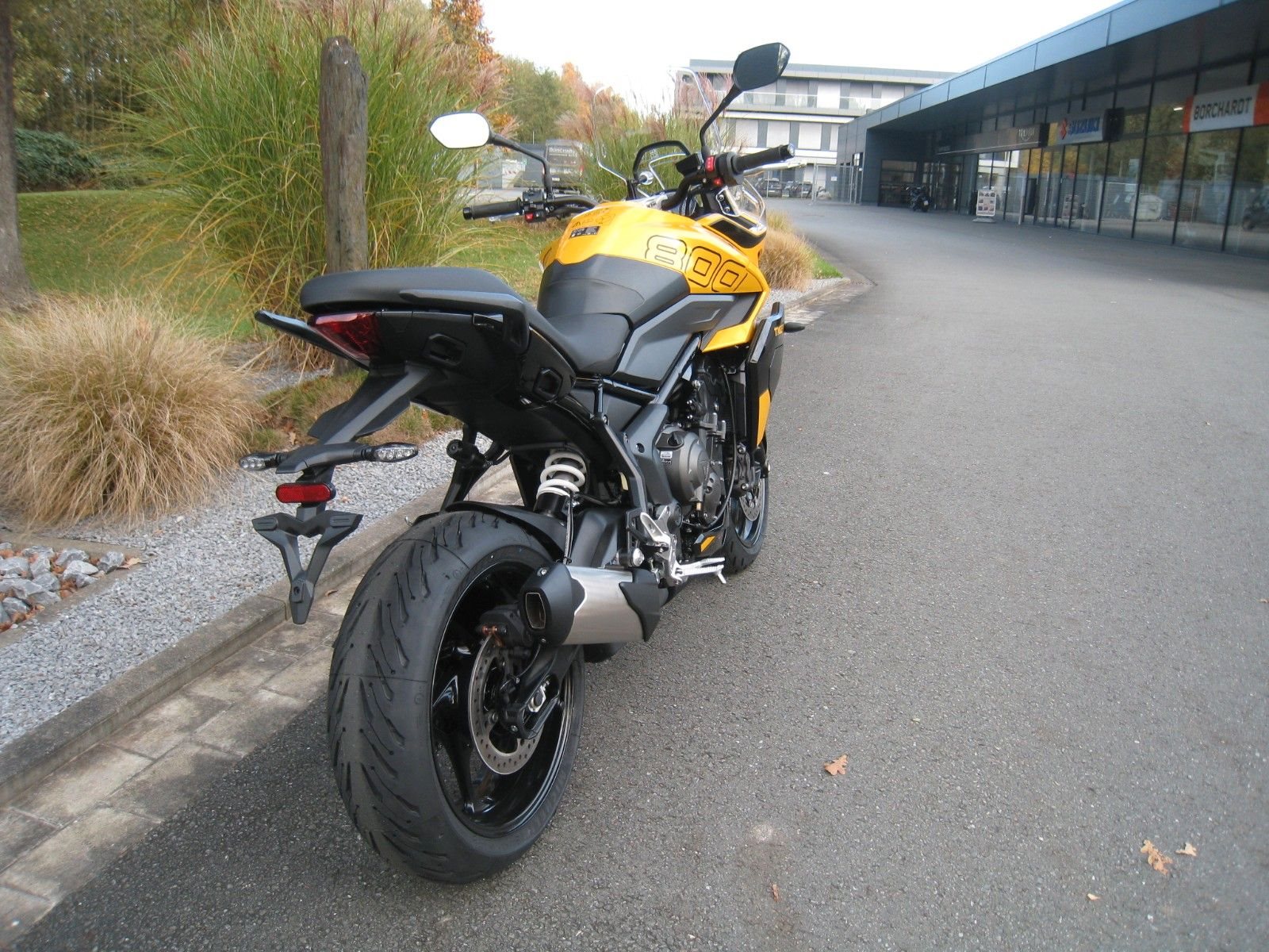 - Motor: Flüssigkeitsgekühlter Reihen-Dreizylinder mit 888 ccm Hubraum, bekannt für seinen charakteristischen T-Plane-Kurbelzapfenversatz, der für mehr Drehmoment im unteren Drehzahlbereich sorgt.