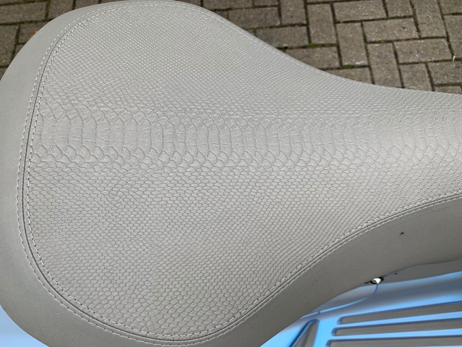 - Zusätzlicher Soziussitz Der zusätzliche Soziussitz, der serienmäßig bei jedem Fahrzeug ist, greift das Schlangenmuster auf, das auch auf dem Fahrersitz und den Griffen zu finden ist. Für ein Erlebnis, das den Mitfahrer ebenso einbezieht wie den Fahrer.