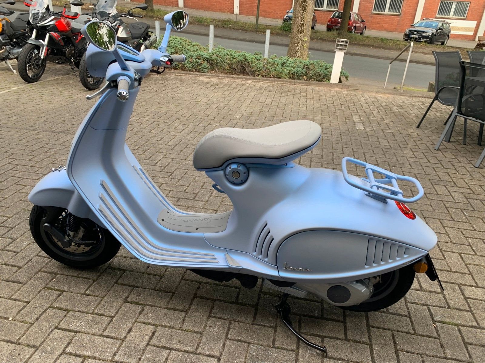 - Erhöhter Komfort An Extras hat die Vespa einiges zu bieten, wiez.B., die Vespa MIA App*, über die Sie Ihr Smartphone mit der Vespa verbinden können, und den praktischen Bike Finder, mit dem Sie sie auf einem überfüllten Parkplatz finden können. In puncto Komfort und Stabilität sorgen eine neue Federung und ein neu gestalteter Sitz für ein bequemeres Fahrerlebnis - sowohl für Fahrer als auch Beifahrer. *als Zubehör erhältlich.