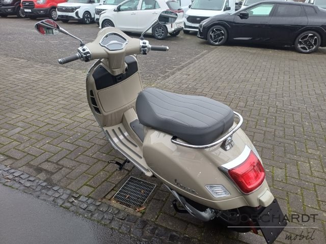 Zeitloses AussehenDie Vespa Gts ist bis ins kleinste Detail durchdacht. Die Metallic-Farben glänzen, Sitzbank und Interieur sind aufeinander abgestimmt, die Chromelemente sorgen für das gewisse Extra an Eleganz und natürlich trägt die berühmte Krawatte weiterhin zum Status der Vespa als zeitlose Ikone bei.
