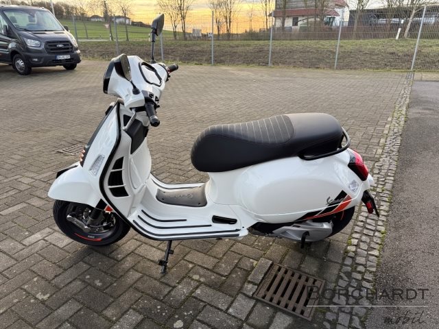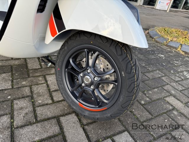 Sportliche Spitzenleistung der VespaFür hohe Leistung und ein sportliches Fahrverhalten sorgen der 310 cm3 Euro 5+ hpe Motor und das hochwertige Fahrwerk mit Stahlkarosserie, 12-Zoll-Felgen, Scheibenbremsen an beiden Rädern, hochwertigen Bremskomponenten, Zweikanal-ABS und ASR-Traktionskontrolle.