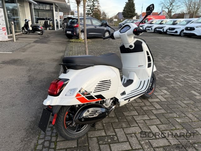 Sportliche Spitzenleistung der VespaFür hohe Leistung und ein sportliches Fahrverhalten sorgen der 310 cm3 Euro 5+ hpe Motor und das hochwertige Fahrwerk mit Stahlkarosserie, 12-Zoll-Felgen, Scheibenbremsen an beiden Rädern, hochwertigen Bremskomponenten, Zweikanal-ABS und ASR-Traktionskontrolle.