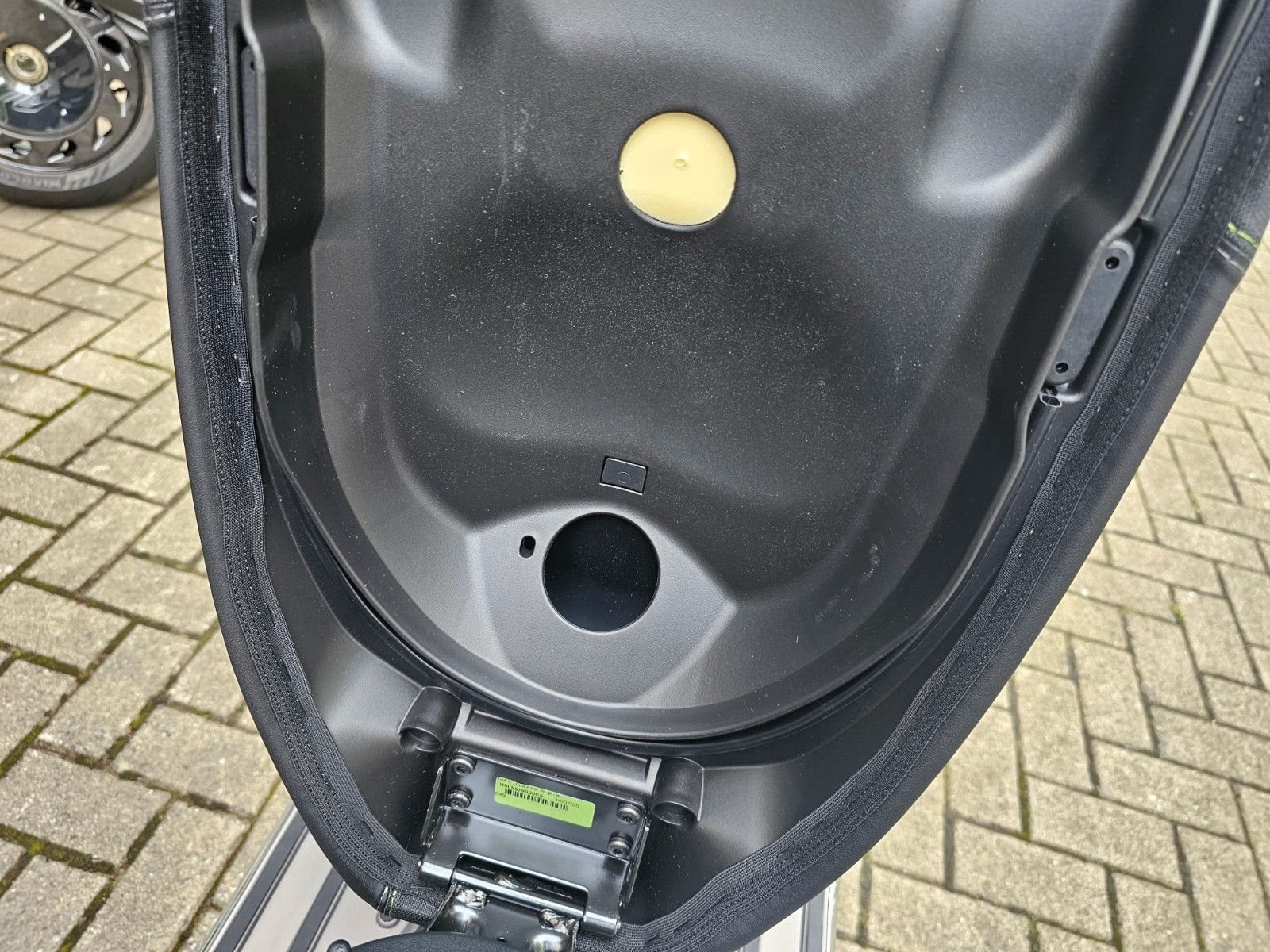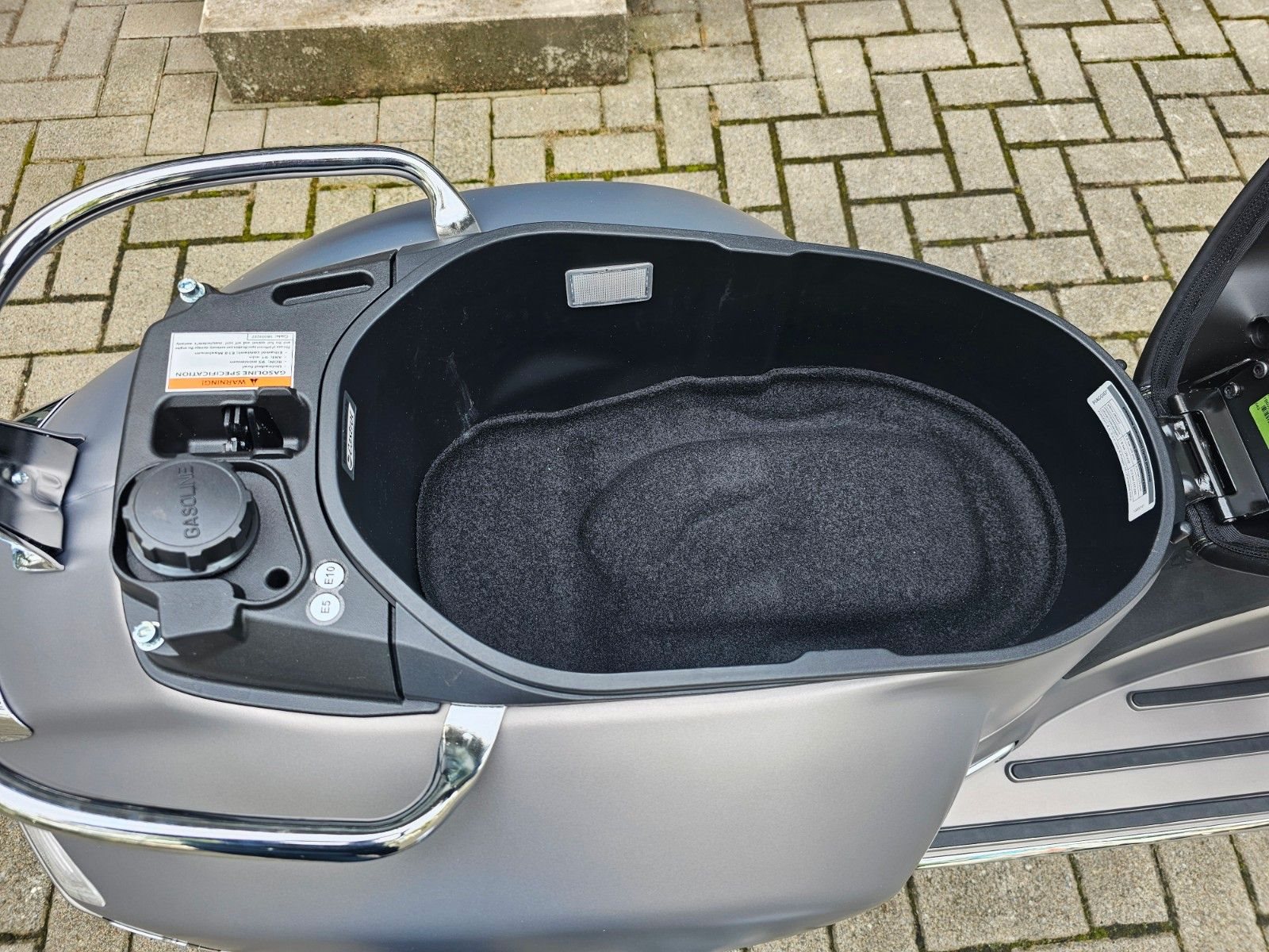 • Praktische Helfer Die Bike-Finder-Funktion hilft dir, deine Vespa auf überfüllten Parkplätzen schnell zu finden, indem du den Blinker und die LED-Tagfahrleuchten mit einer einfachen per Remote aktivierst. Darüber hinaus ist das Staufach unter der Sitzbank mit einer Matte ausgestattet und wird durch eine praktische Innenleuchte beleuchtet. Das Keyless System öffnet das Staufach unter der Sitzbank und startet die Zündung ohne Verwendung eines Schlüssels, wodurch ein noch schnelleres und müheloseres Losfahren gewährleistet wird.