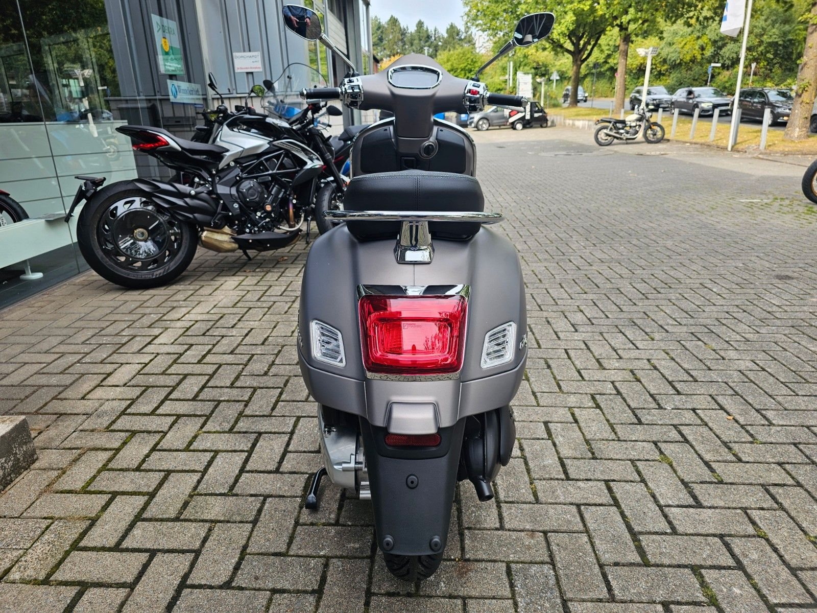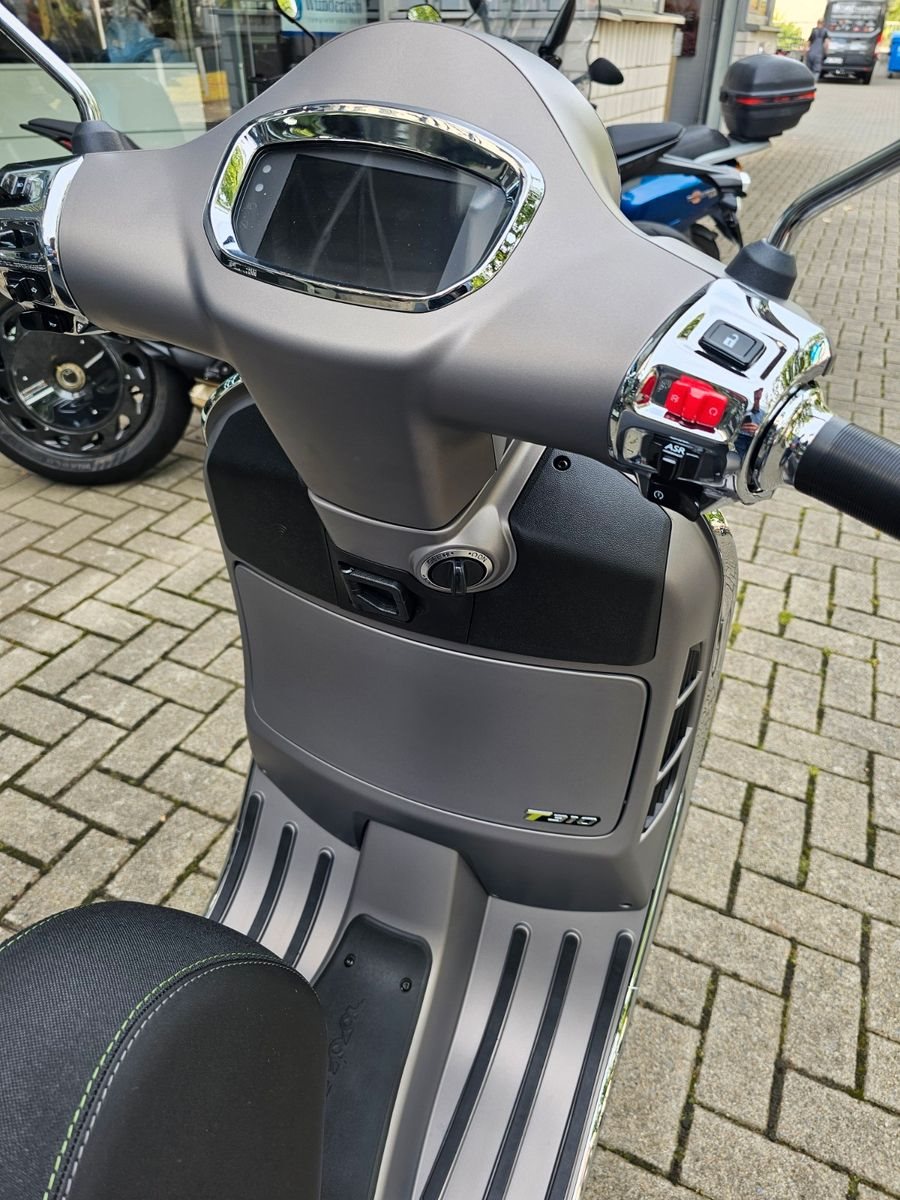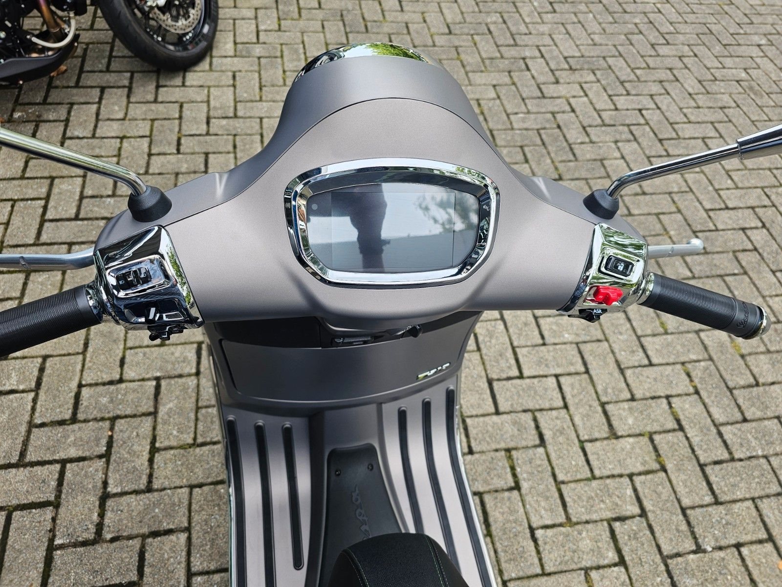 • Cockpit Das 5-Zoll-TFT-Farbdisplay bietet eine fortschrittliche Anzeige, die während der Fahrt wichtige Informationen wie Verbrauch, Durchschnittsgeschwindigkeit, Reichweite und Kraftstoffstand liefert. Dank der MODE-Taste am Lenker ist es einfach, durch die Einstellungen zu navigieren, den Bildschirm zu wechseln und das Vespa MIA System zu bedienen. Darüber hinaus führt dich das Navigationssystemmit GPS-Anweisungen in Form von Piktogrammen direkt auf dem Display und zeigt Entfernung, Zeit und alternative Routen an.