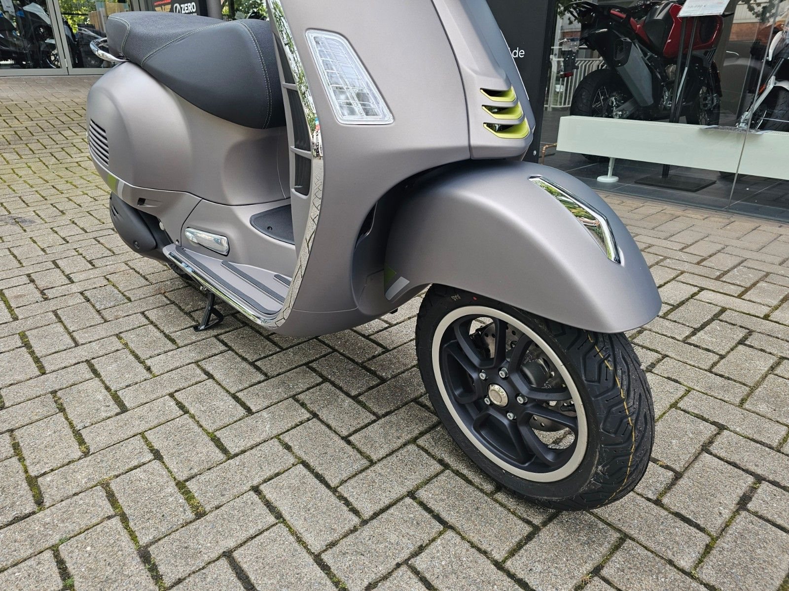 • Technologie mit raffinierten Linien Ein einzigartiges und attraktives Design, das an die Exklusivität und technologische Innovation einer authentischen italienischen Ikone erinnert. Die Vespa GTS SuperTech zeichnet sich durch ihre glänzenden und matten Farben, die Farbverläufe und die fluoreszierenden Details aus, die ihren Hightech-Spirit und raffinierten Charakter widerspiegeln. Die sorgfältigen Verarbeitungen am schwarzen Sattel und an den Schutzblechkanten betonen ihre Eleganz und ihren Charakter noch weiter.