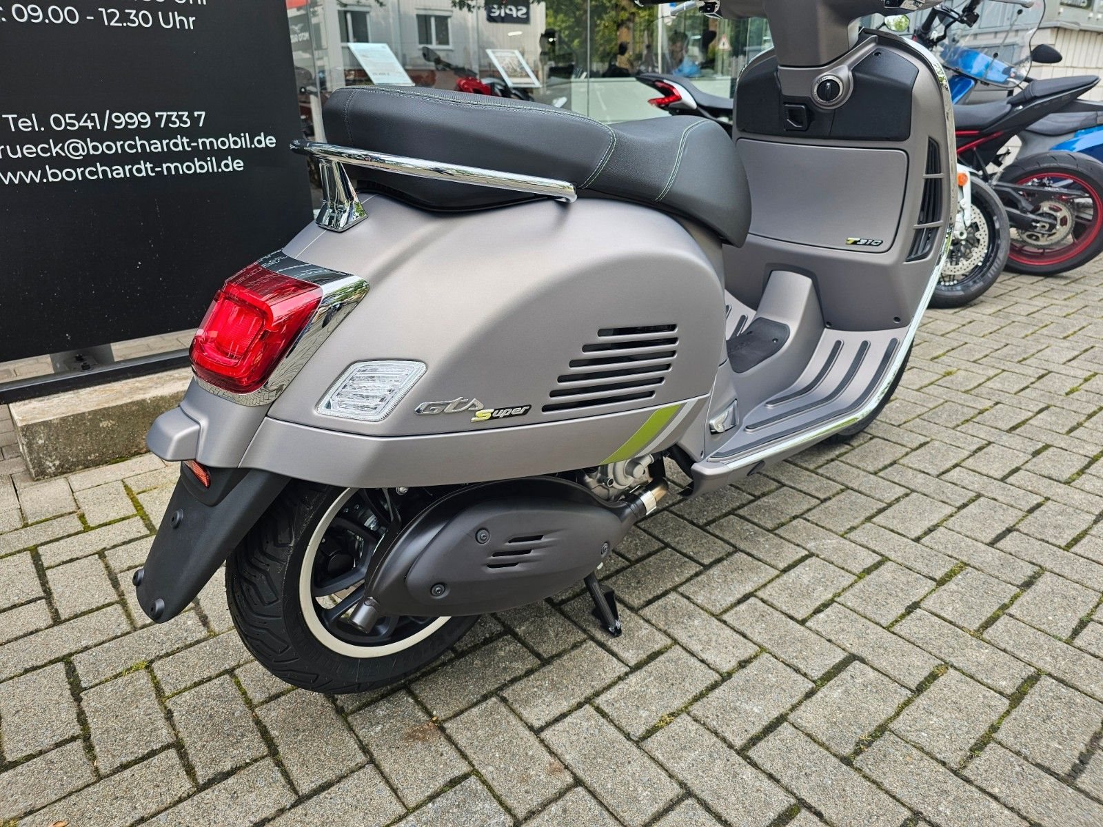 • Die Zukunft der Mobilität Ein Meisterwerk der modernen Technik, das sich mit der zeitlosen Klasse der Vespa Gts SuperTech verbindet. Der 310 cm hpe Motor, der nach Euro 5+ Norm zugelassen ist, bietet ein flüssiges, spritziges und reaktionsschnelles Fahrerlebnis, sowohl in der Stadt als auch außerhalb. Umhüllt von einer Stahlkarosserie, mit 12 Zoll Felgen und ausgestattet mit Zweikanal-ABS und ASR, unterstreicht die Vespa Gts SuperTech ihre einzigartigen Eigenschaften. Die Qualität der Leistung spiegelt sich auch in dem niedrigen Verbrauch und der Geräuschreduzierung wider, für ein effizienteres Fahrerlebnis.