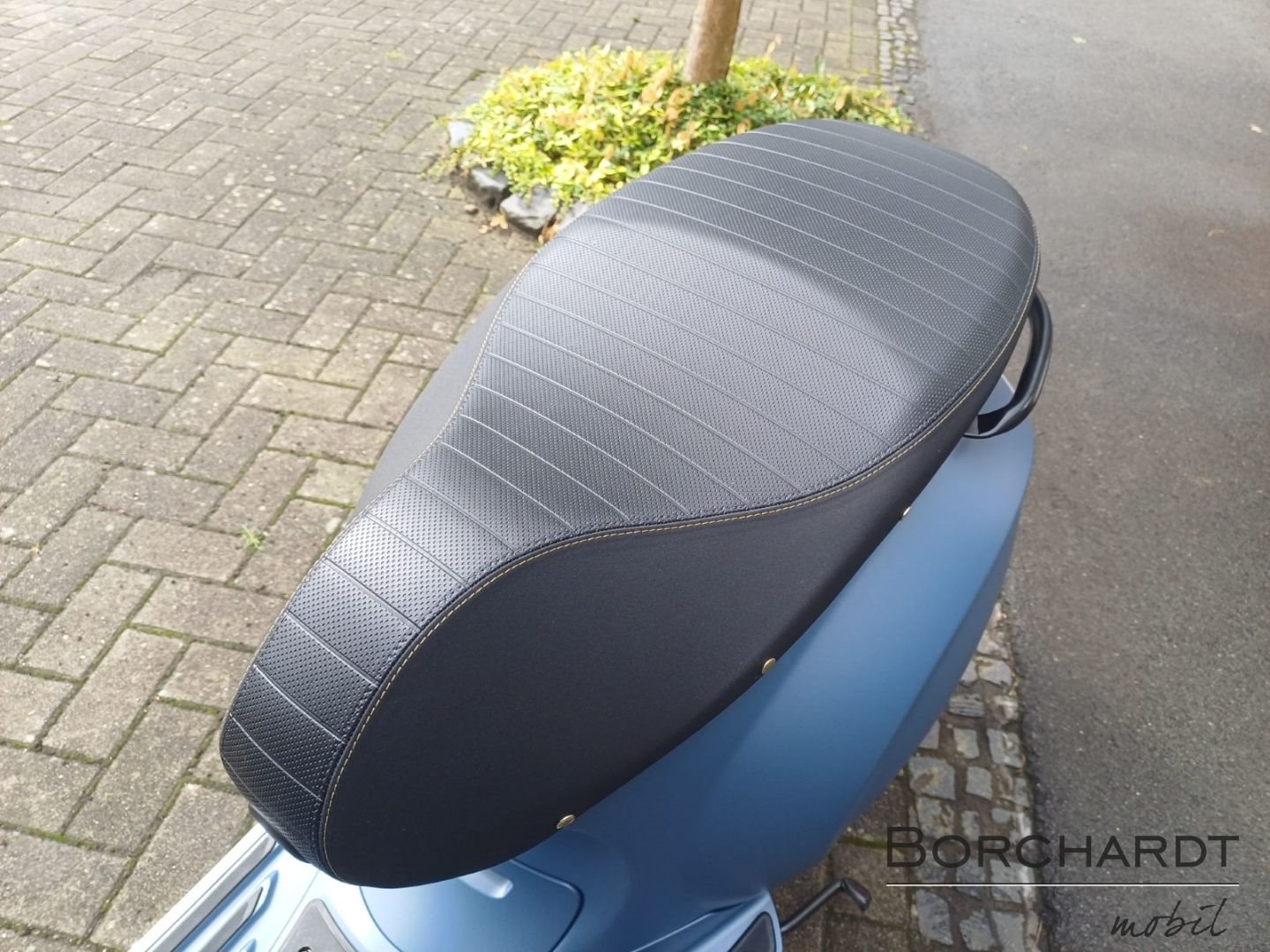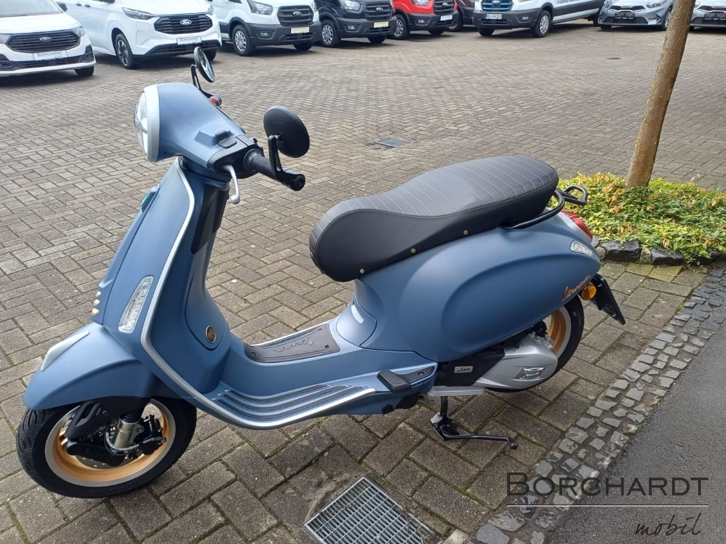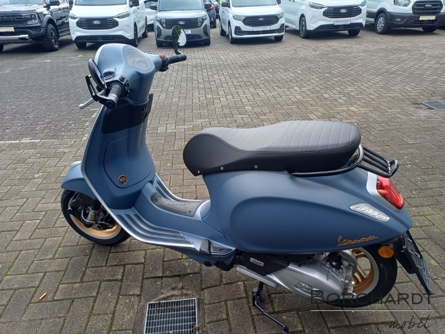 Die Vespa Primavera Officina 8 bringt das Erbe von Vespa mit Eleganz und einem modernen Touch neu auf die Straße. Die intensive blaue Lackierung ist von den Industriemaschinen in der historischen Werkstatt Officina 8 des Piaggio Werks inspiriert. Eine Hommage an die Tradition, die zu einem unverwechselbaren Symbol für Stärke und Identität geworden ist. Die metallene Details, die polierten Messingnieten und die Kontrastnähte auf dem Sattel zeugen von der Genialität, Sorgfalt und Leidenschaft, die Vespa seit jeher auszeichnet.