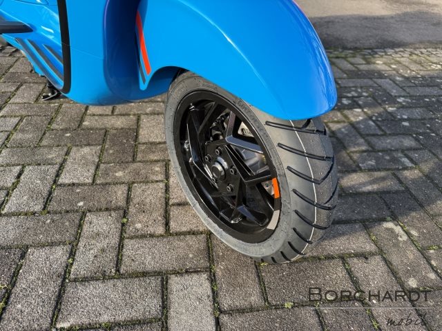 Ein faszinierender LookDie Vespa S Sprint verkörpert den unverwechselbaren Charakter der Generationen von Vespa Sportmodellen, die in jedem Umfeld einen Hauch von Dynamik versprühen. Ihr sportlicher Look wird durch kontrastierende Grafiken unterstrichen, während schwarze Details wie der rechteckige Rahmen um den Scheinwerfer und die neu designten 6-Speichen-Aluminiumfelgen für eine raffinierte Note sorgen.