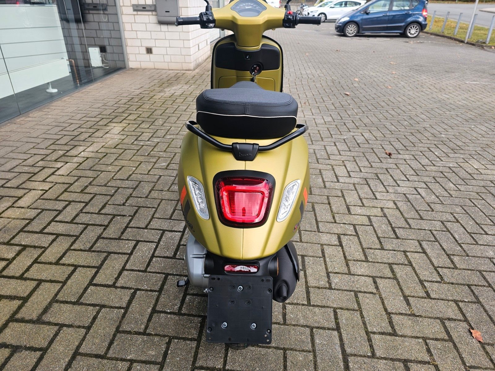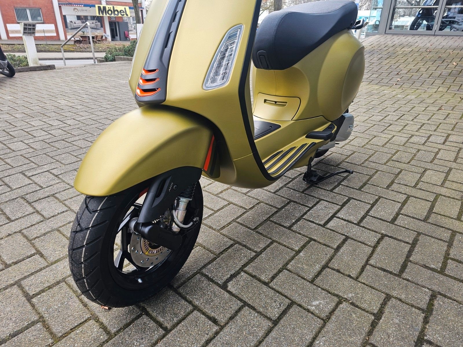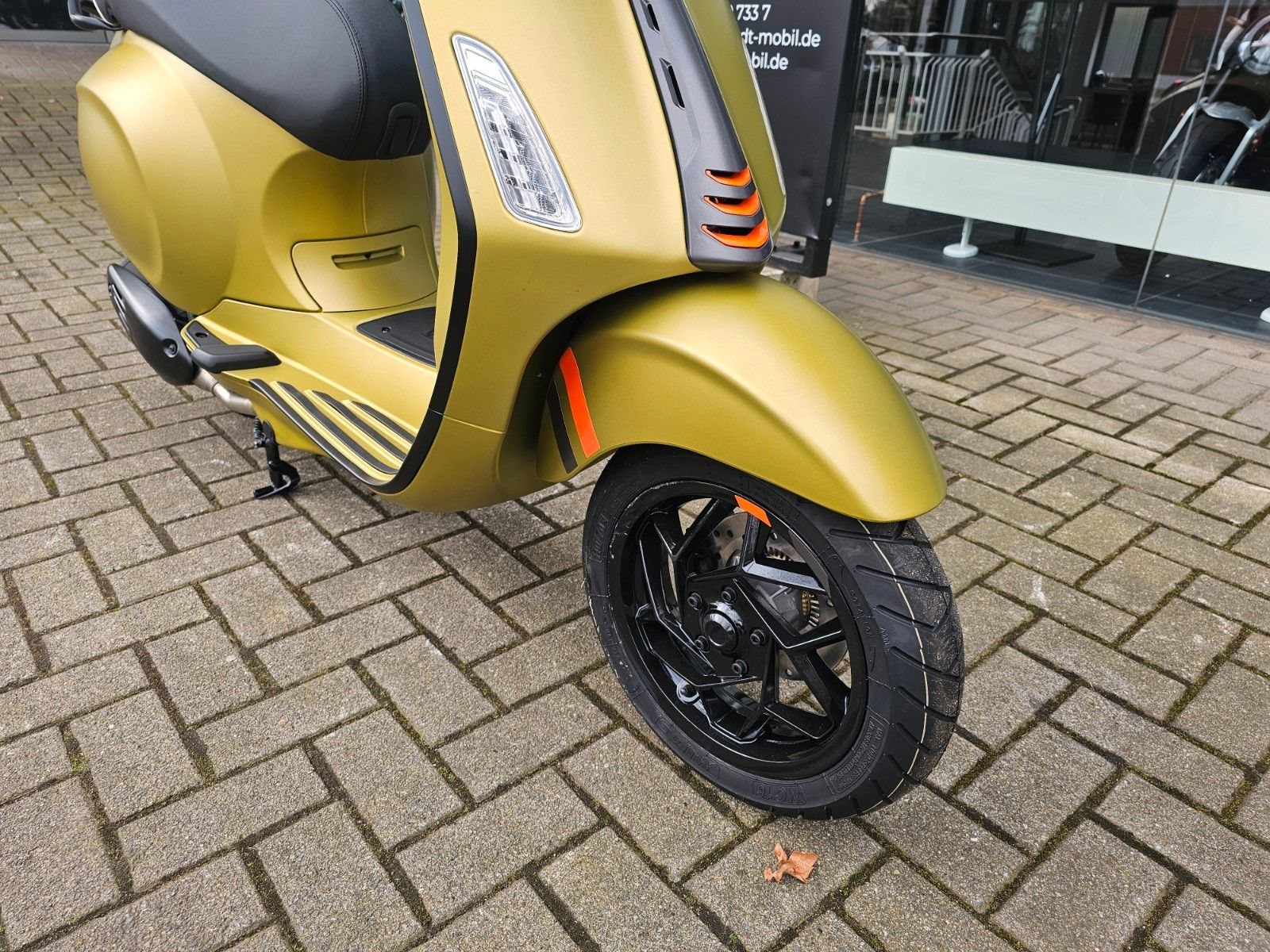 • Design :Die charakteristischen schwarzen Felgen im 6-Speichen-Design und der markante Sitz mit sorgfältig ausgewählten Texturen und Materialien spiegeln die sportliche Seele der Vespa Sprint S und die Liebe zum Detail wieder.