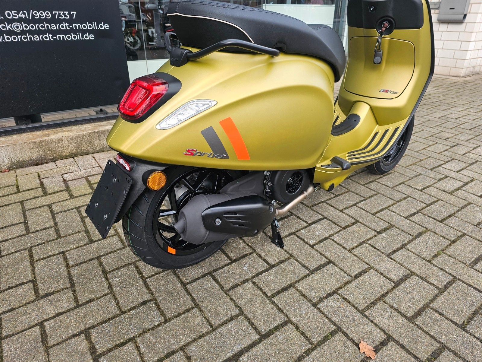 • Leistung Die Vespa Sprint 125 S ist mit einem einzigen hydraulischen Stoßdämpfer, einem ABS für verbesserte Bremssicherheit und einem 125-ccm-Motor mit elektronischer 3V-Einspritzung für hervorragende Leistung und Effizienz ausgestattet.