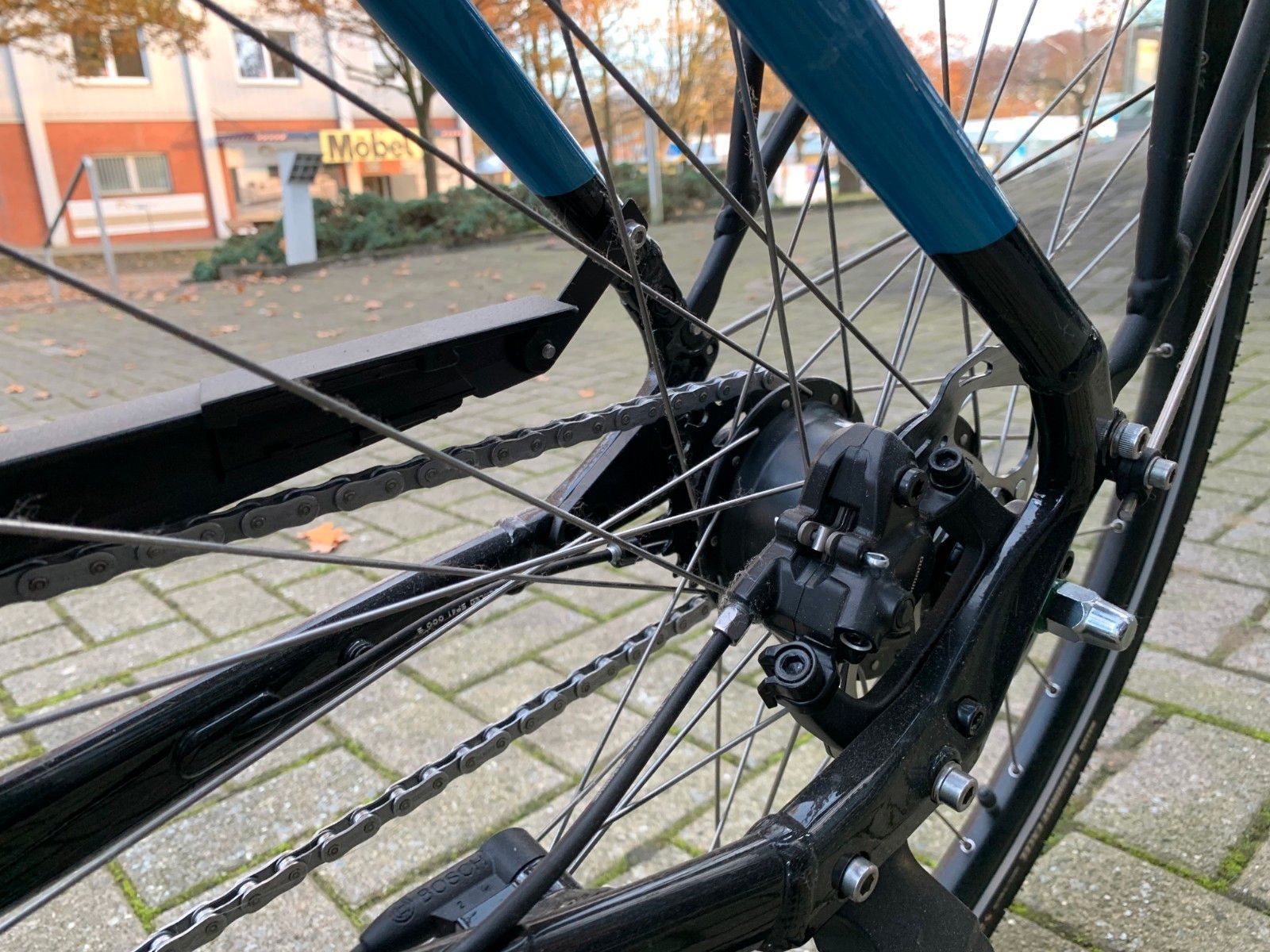 - Das Fahrrad ist ausgestattet mit einer hydraulischen Scheibenbremse.