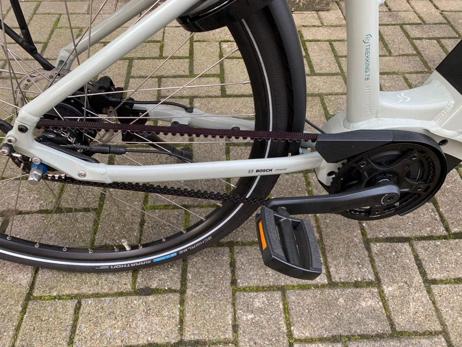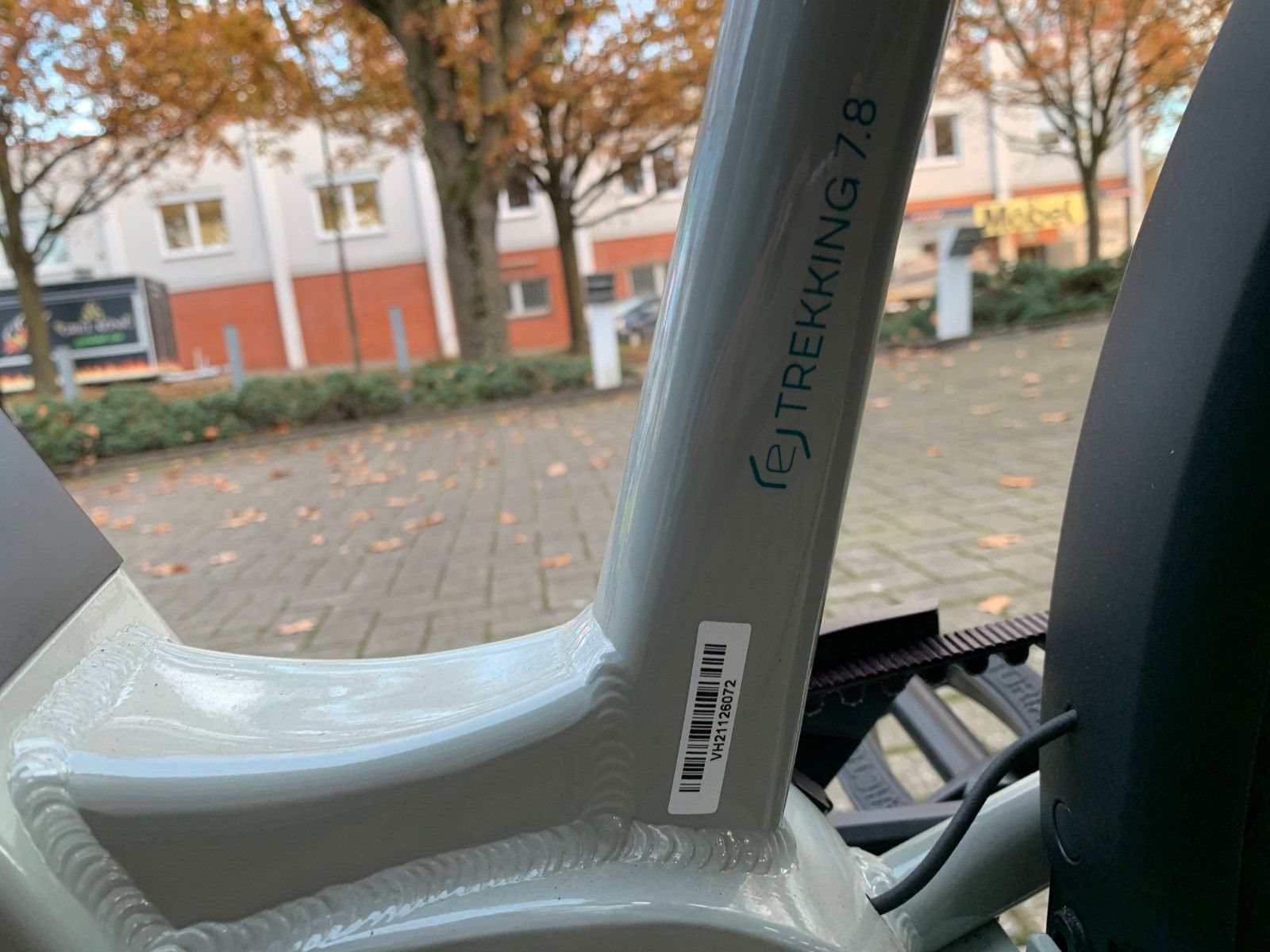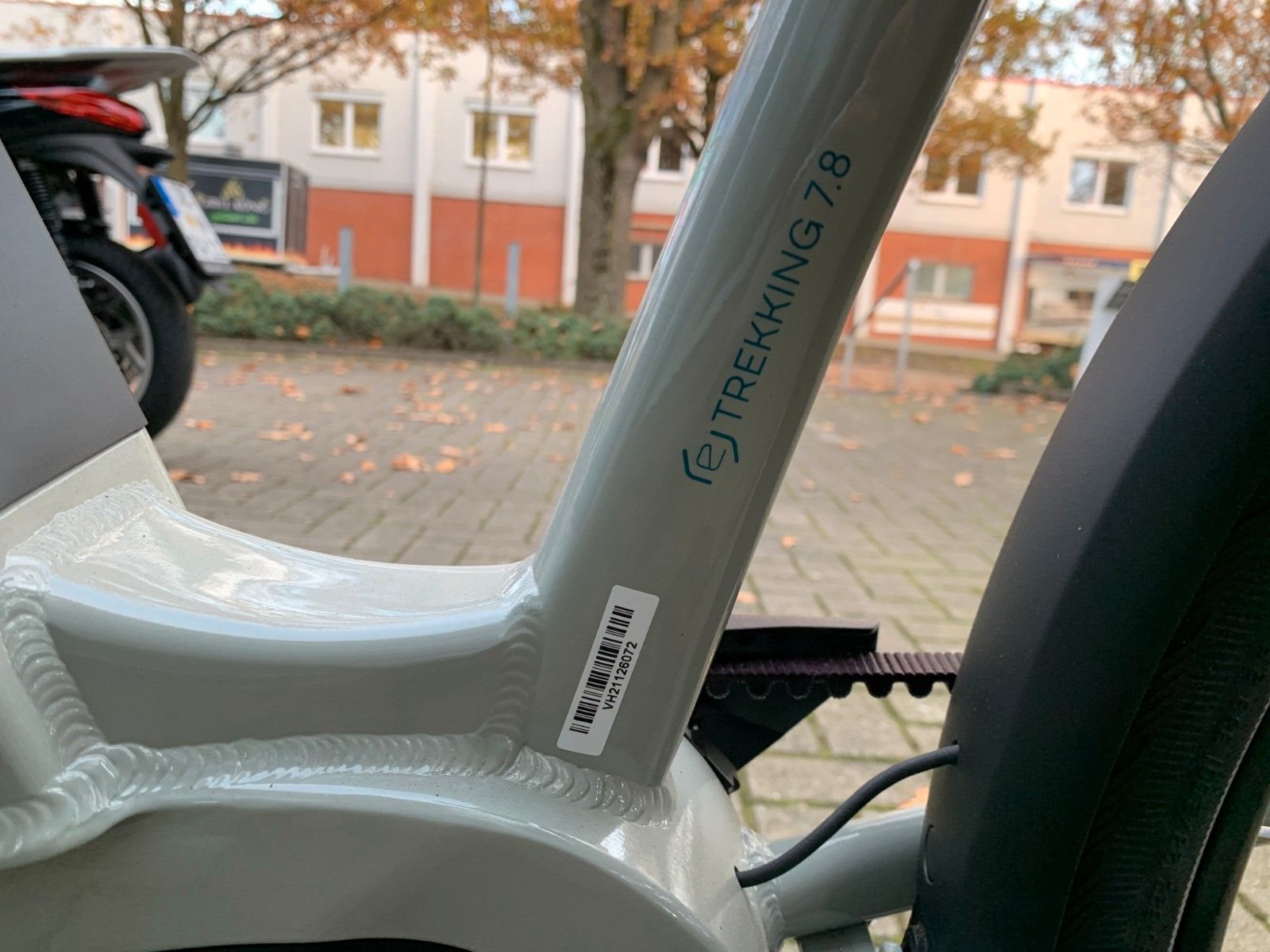 - Das eTrekking 7.8 basiert künftig auf einer neuen Rahmenplattform, bei der das BOSCH PowerPack 500 per Kunststoff-Cover in die Formensprache des Rahmens integriert wird. Der BOSCH Performance Motor unterstützt drehmomentstark, geschaltet wird per 5-Gang Nexus - wahlweise mit Rücktritt oder Freilauf.