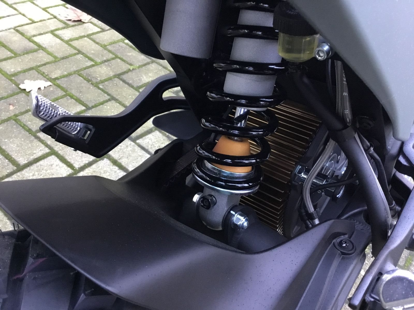 - Showa-Gasdruck Stoßdämpfer, Kolbendurchmesser 40 mm, mit fixiertem, externem Reservoir, Federvorspannung, Druck- und Zugstufendämpfung einstellbar