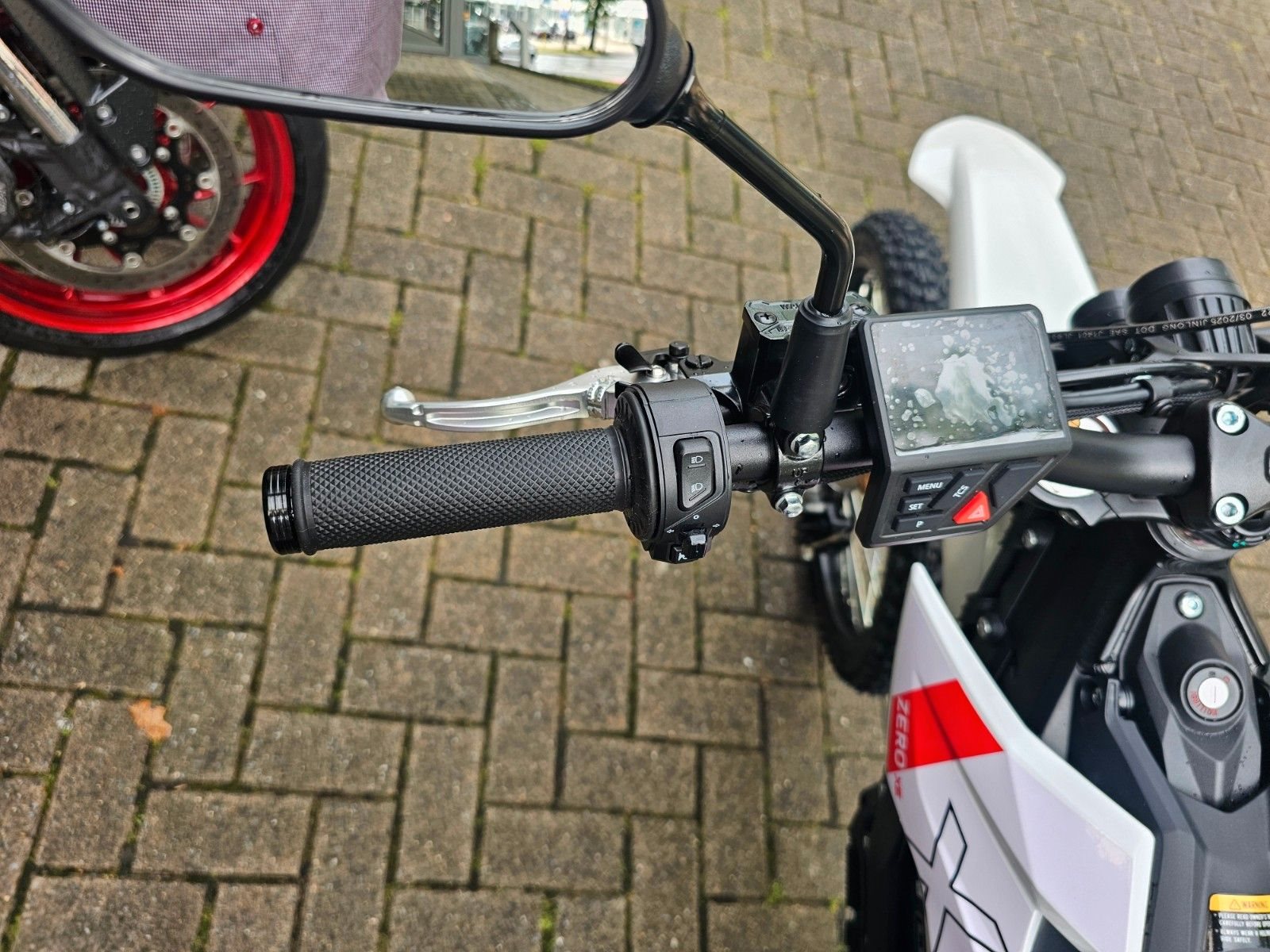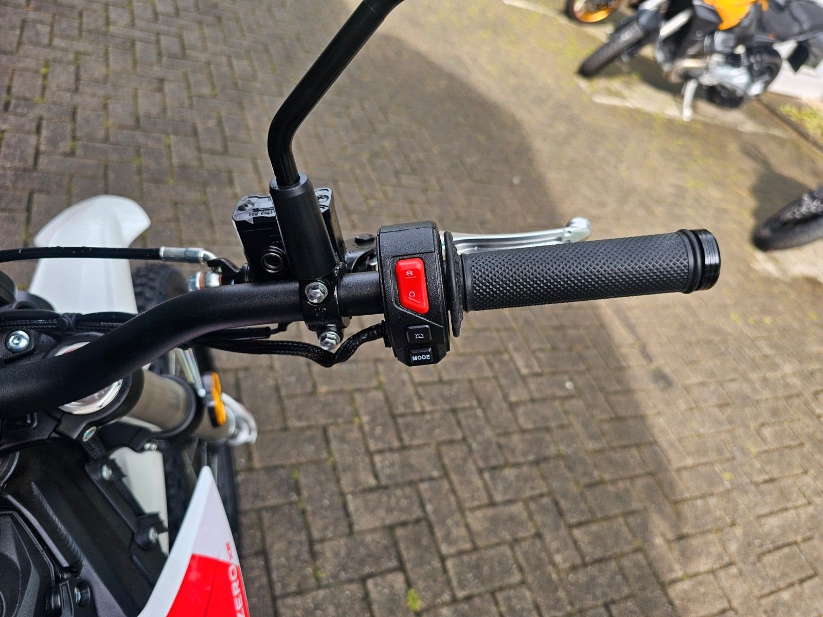 - BREMSEN Die Hinterradbremse der Zero XB wird über die linkte Hand bedient und bietet maximale Kontrolle mit den Fingerspitzen. Die Zweikolben-Bremssättel an der Front (220 mm) und am Hinterrad (203 mm) sind DOT-hydraulische Motorradbremsen, die in praktisch jedem Fahrszenario ein beruhigendes Gefühl von Kontrolle bieten.